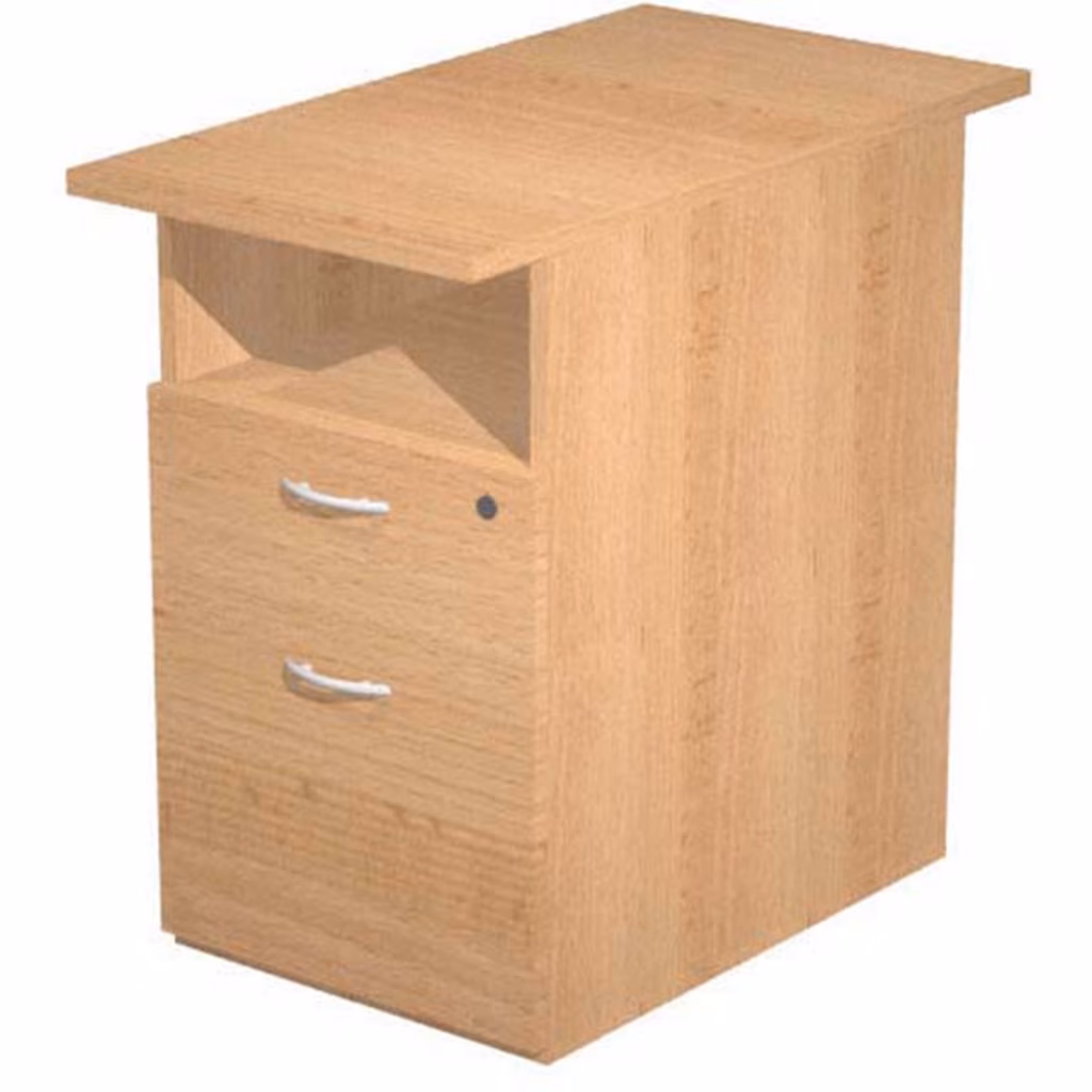 Cassettiere alte da affiancare alle scrivanie al lato di L80 cm nelle postazioni compact con sagomatura. Cassetti con guide metalliche e fermo a fine corsa. Modello da L43 P80 H72 cm con un vano a giorno, 1 cassetto con serratura e 1 cassetto classificatore per cartelle sospese interasse 33 cm.