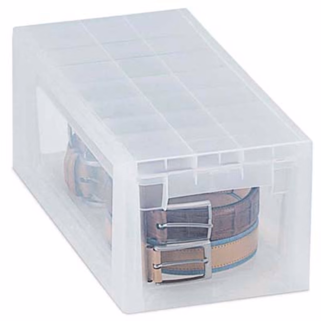 Cassetto multiuso trasparente ed estraibile da entrambi i lati - sovrapponibile e, grazie alle clip di accoppiamento in dotazione, modulabile in orizzontale - ideale anche per riporre accessori, oggettistica, coperte, giacconi, ecc..