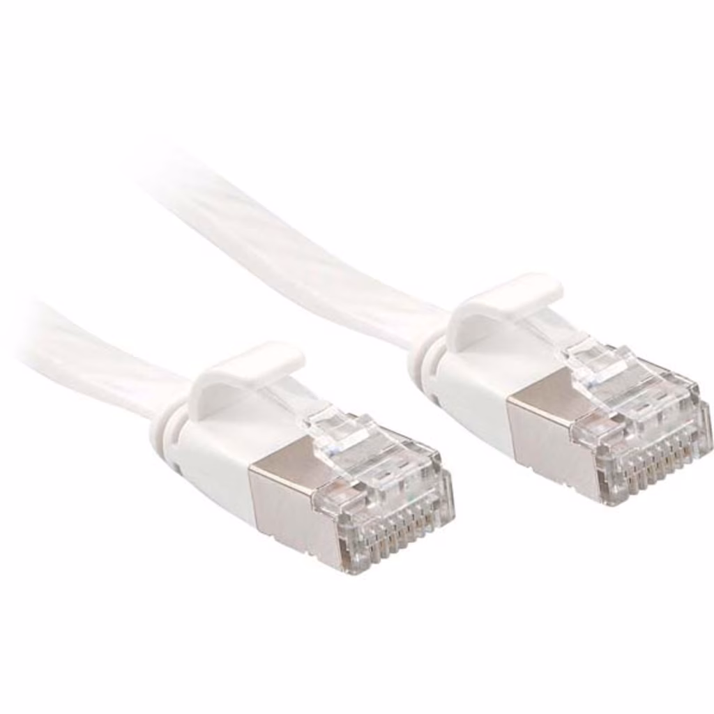 I cavi flat sono estremamente flessibili, ideali per applicazioni particolari, passaggio di cavi sotto tappeti, parquet, laminati o tra il battiscopa e la parete. RJ45 con protezione antipiega e antistrappo Cavo piatto Schermato Supporto 10/100/1000 Base-T Cablaggio: 1:1 Colore: bianco