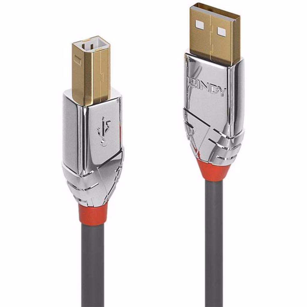 Cavo USB 2.0 Tipo A a B di alta qualità e design ricercato Supporta velocità di trasferimento dati fino a 480Mbps Connettori e contatti placcati oro, guscio in ABS cromato Cavo con doppia schermatura, resistente alla corrosione, conduttori in rame stagnato ad alte prestazioni USB 2.0, 480Mbps; 10 anni di garanzia Dal concetto di connettività delle nuove linee sviluppate da Lindy nascono i cavi USB 2.0 Tipo A a B Cromo, caratterizzati da connettori cromati e contatti placcati oro per un mix di prestazioni e design di alto livello. I cavi USB 2.0 Cromo Line sono realizzati con conduttori in rame stagnato per performance ottimali e resistenza alla corrosione. Contatti e connettori sono placcati oro per mantenere la massima integrità del segnale e affidabilità. Supportano velocità di trasferimento dati fino a 480Mbps per il trasferimento rapido e semplice di grandi volumi di dati. Disponibili in diverse metrature: 0.5m, 1m, 2m, 3m, 5m e 7.5m.
