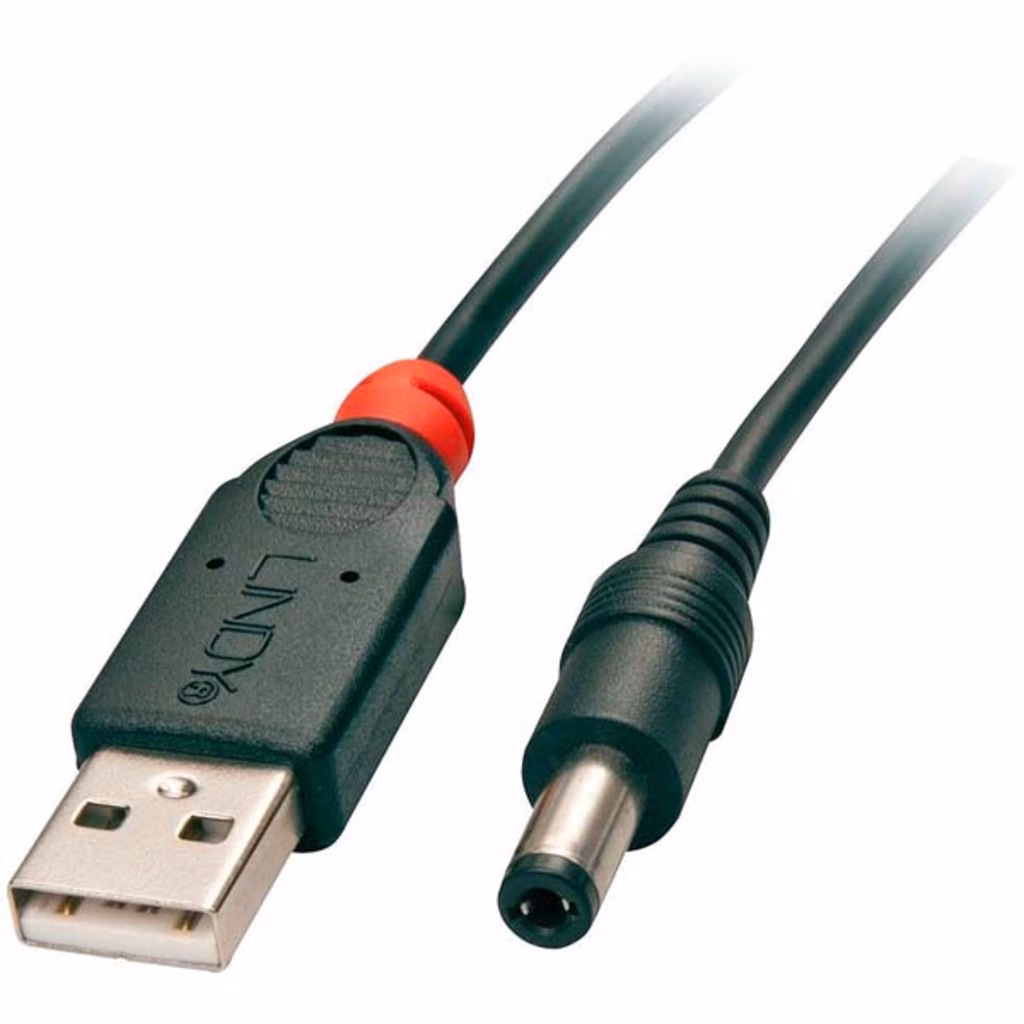 Cavo di alimentazione per periferiche USB e per dispositivi con ingresso DC con diametro 5.5/2.5mm Tensione di alimentazione 5V (max. 3A/5V) / 1.5A Jack DC 5.5 / 2.5 mm Lunghezza del cavo: 1.5m Diametro esterno del cavo: 3.5mm