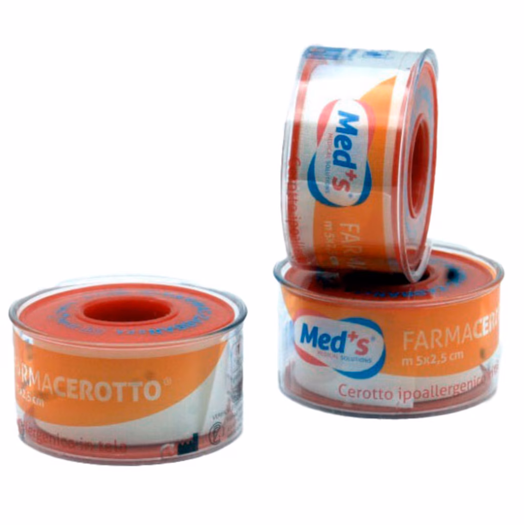 Cerotto su rocchetto in tela per pelli normali indicato per il fissaggio di medicazioni da mantenere a lungo. Misura m 2,5 x 5 cm; REPERTORIO DISPOSITIVI MEDICI Ministero della Salute nr. 21628 CND M050101
