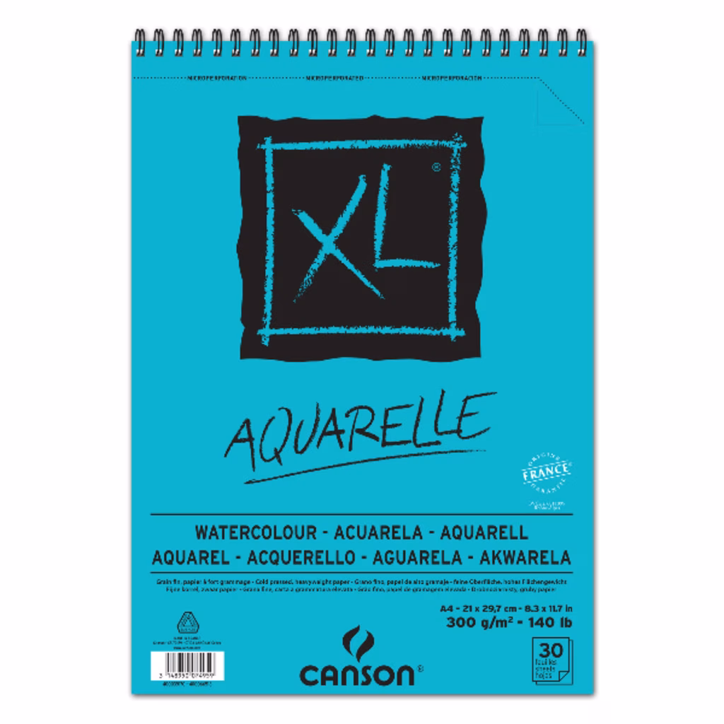 Conf. da 5  Album spiralato lato corto XL WATERCOLOUR A4 30 fg. 300 g/m². Carta a grana fine per acquerello. Facile asportazione dell'acqua in eccesso.