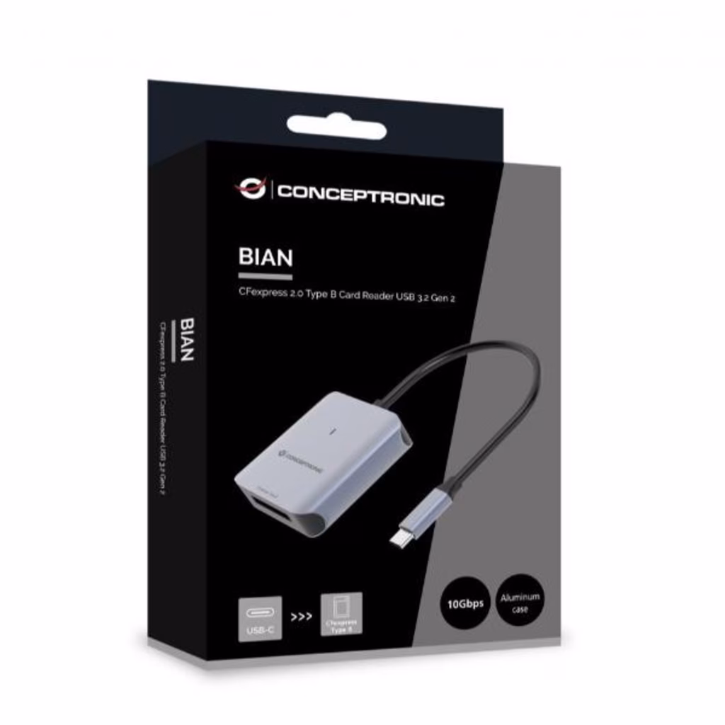 Questo lettore di schede CFexpress è dotato di un'interfaccia USB-C che consente il trasferimento di dati ad alta velocità dalla scheda di memoria CFexpress di tipo B a qualsiasi computer compatibile con USB-C, con velocità di trasferimento fino a 10 Gbps. Un indicatore LED fornisce un segnale visivo durante le operazioni di lettura e scrittura dei dati.