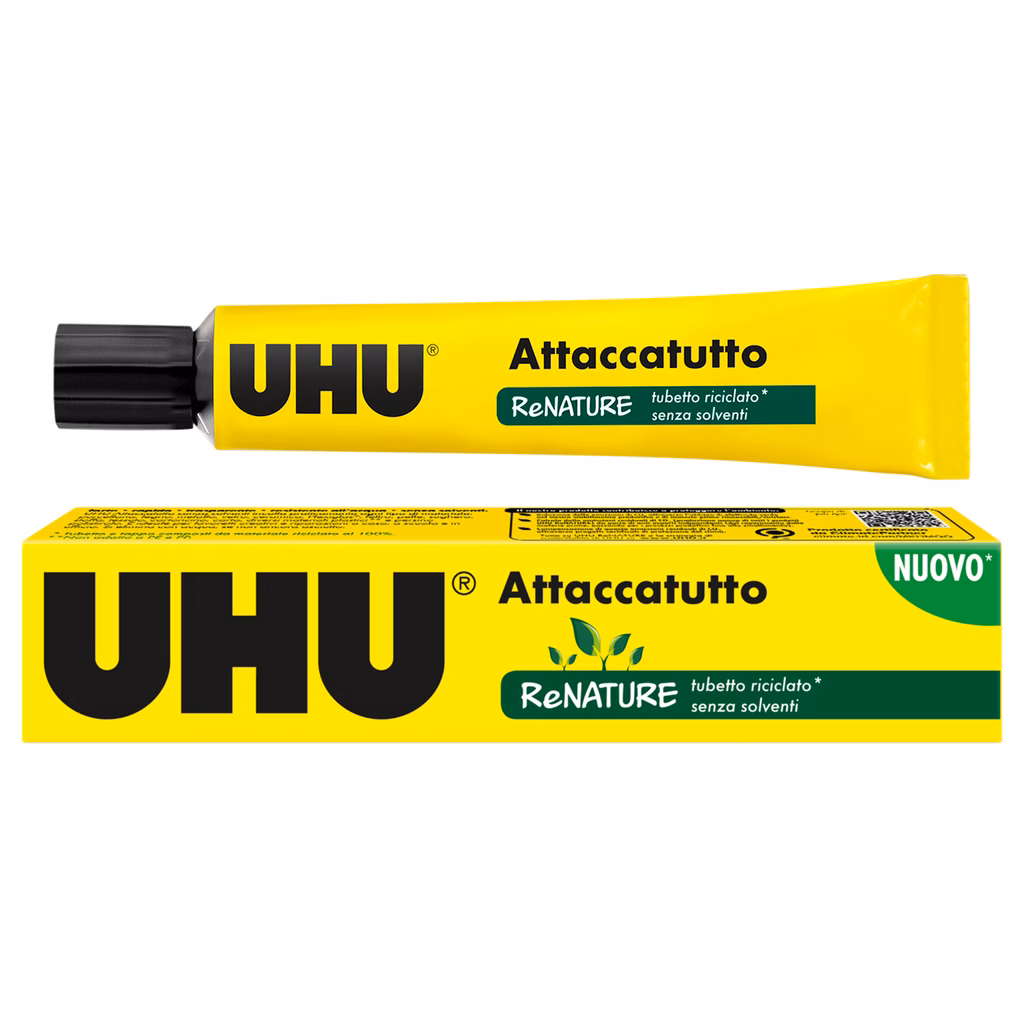 UHU Attaccatutto ReNature Senza Solventi- il moderno liquido attaccatutto ad altissima performance senza solventi. Incolla con la stessa forza del classico attaccatutto. Ideale per essere utilizzato a scuola, all'asilo, a casa ecc... Asciuga velocemente, è inodore e si rimuove facilmente, quando non ancora asciutto.