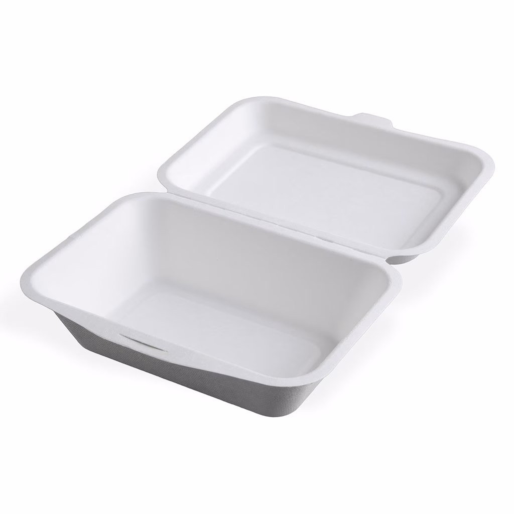 Contenitore monouso con coperchio a cerniera bio&compostabile in polpa di cellulosa - Certificati Ok Compost che garantisce la conformità alle norme europee per il packagingc ompostabile emanate nel 2002 (direttiva EN 13432) - Realizzati con materie prime di origine rinnovabile euna volta utilizzati vengono trattati insieme ai rifiuti organici per produrre compost - Resistente al calore: sono utilizzabili nel forno tradizionale max 10 minuti a 100 °C e nel forno a microonde max 3 minuti a 800W - Resistente al gelo: Resistenti fino alla temperatura di 25 °C sotto lo zero, sono utilizzabili nel congelatore - Resistente all'acqua: le stoviglie in polpa di cellulosa possono contenere cibi liquidi caldi e freddi