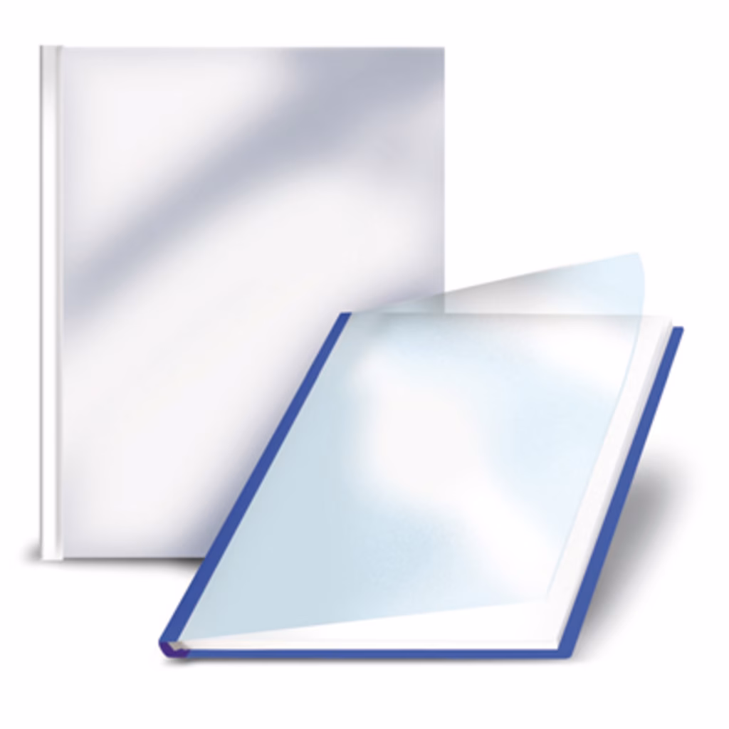 Copertine flessibili per rilegature istantanee - per rilegatrici Impressbind, Channel Bind 300 e Channel CH 6000 - fronte trasparente, dorso e retro della copertina con finitura effetto lino