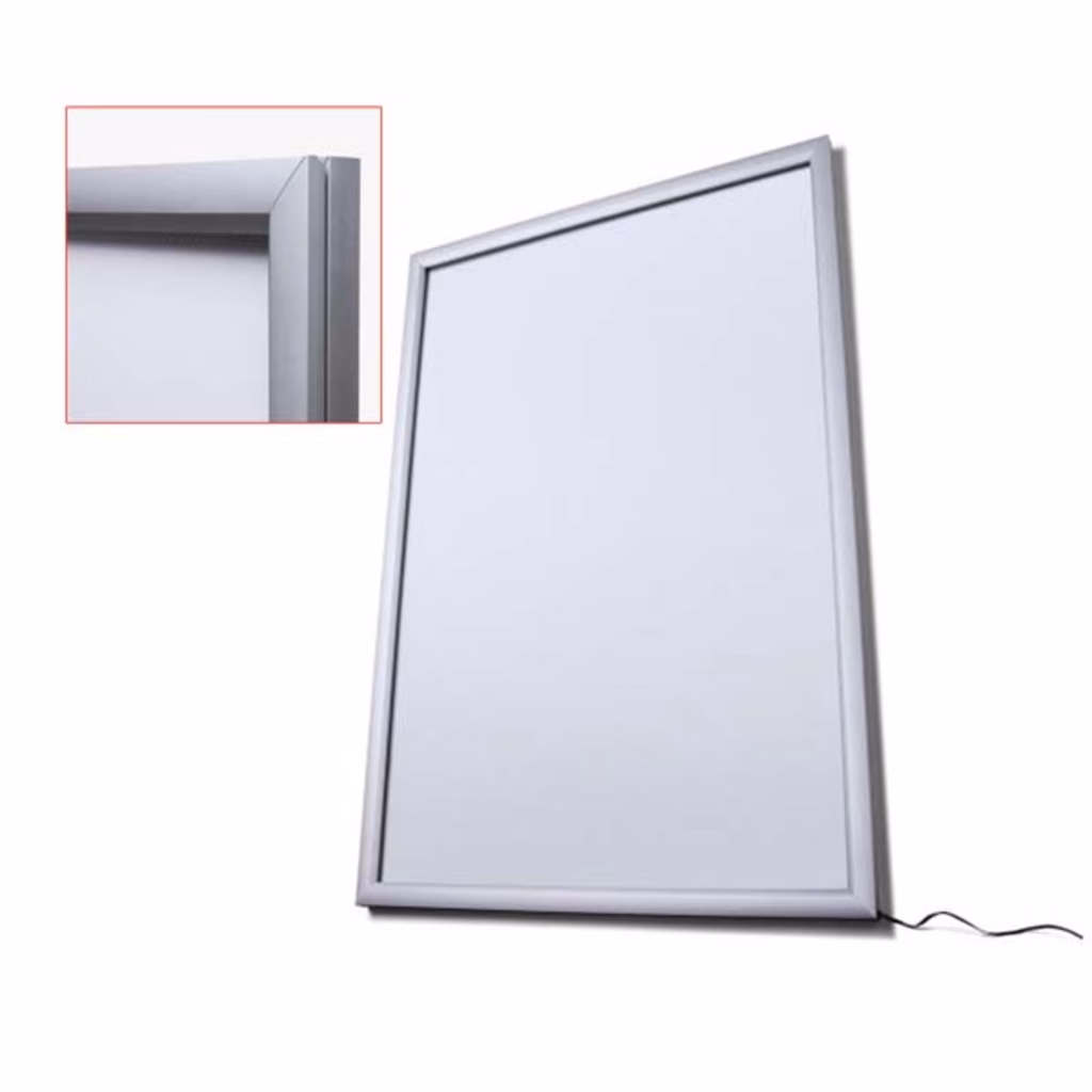 Cornice a scatto monofacciale in alluminio, illuminata a led, per poster cm 70x100 - trasformatore e pellicola protettiva inclusi - opzionale, per applicazioni non a parete, il kit di fissaggio a sospensione