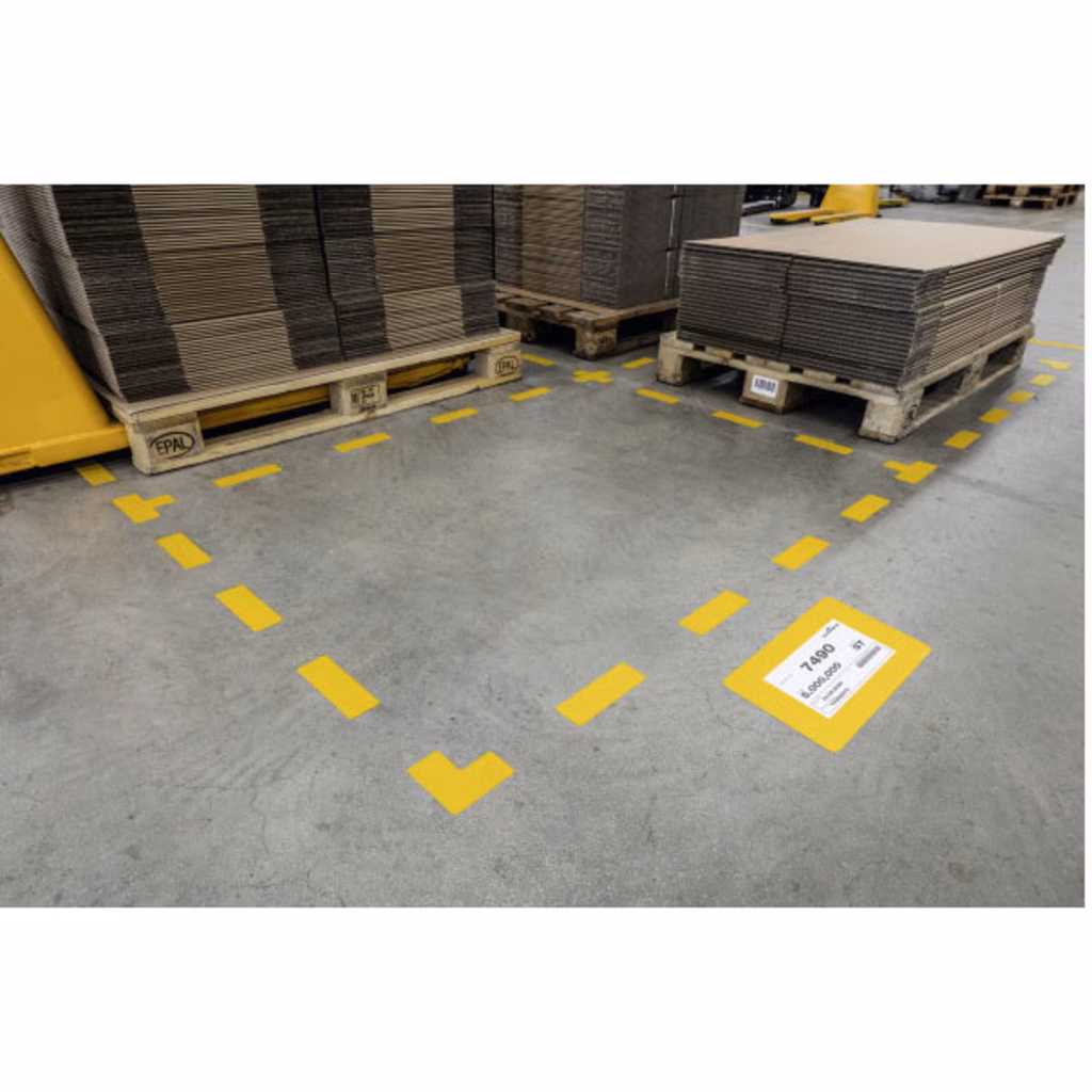 Cornici adesive con finestra trasparente personalizzabile per la segnaletica orizzontale in ambienti interni - le bande adesive, rimovibili, fanno aderire il prodotto al pavimento - facile applicazione: inserire l'inserto sotto la finestra trasparente, le bande adesive lo proteggono da polvere e sporco - la superficie scelta deve essere liscia, robusta, pulita e priva di grasso e polvere - può essere utilizzata sia in formato verticale che orizzontale - colore della cornice giallo segnale tipo RAL 1003