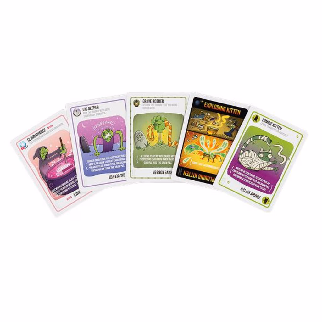 Usate potenti carte per muovere o evitare la carta Exploding Kittens e Risorgete dalla tomba con la carta Zombie Kitten per avere la vostra vendetta!