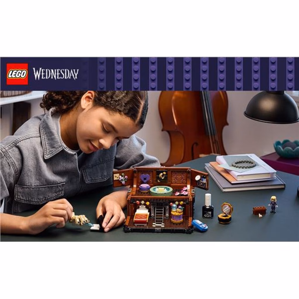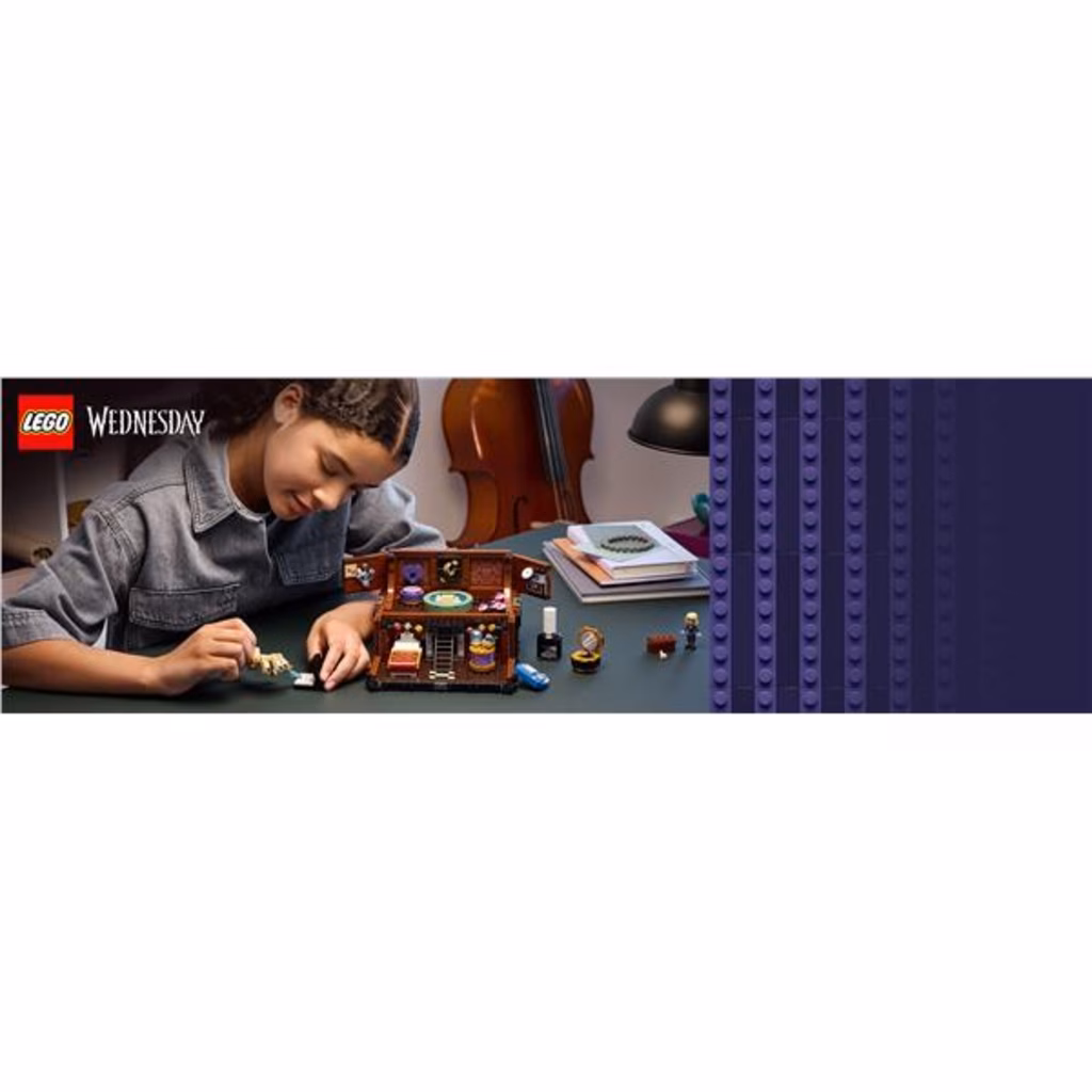 Playset Mercoledì LEGO®: il set comprende una casa-baule giocattolo con aree abitative distinte, dettagli divertenti e molti accessori (sia attesi sia inattesi!) ed è un oggetto unico per decorare le camerette