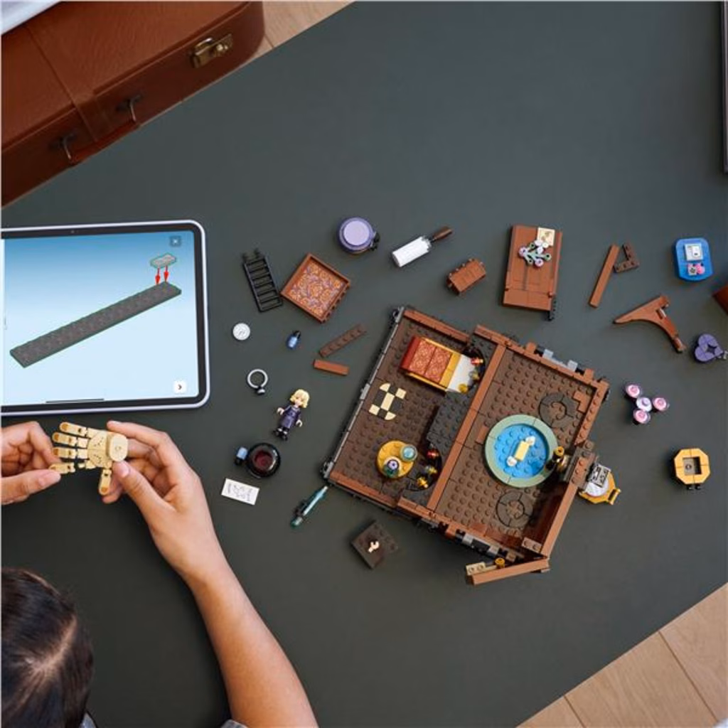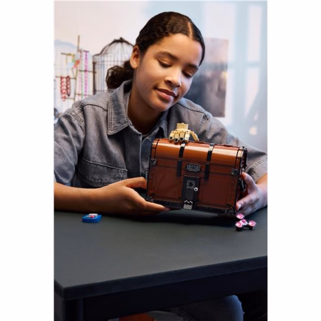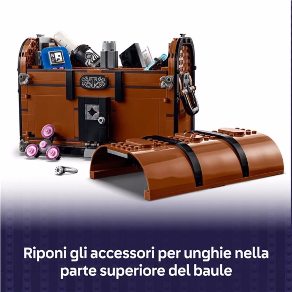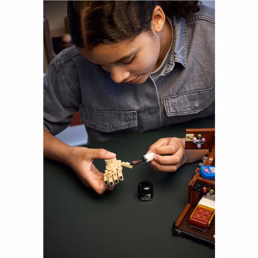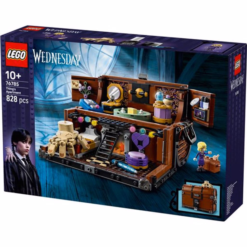 Un gioco infinito con una casa portatile attende i fan di Mercoledì dai 10 anni in su con questo dettagliato set da costruzione in mattoncini Appartamento di Mano di Mercoledì LEGO® (76785). Un divertente regalo di compleanno per i bambini, questo modello creativo play-and-display contiene un baule apribile che include un letto, una sedia, un cappello e un orologio, uno spazio nella parte superiore del baule per adesivi, smalto, crema per le mani e altro ancora. Più una figura snodabile di Mano e una minidoll di Enid.