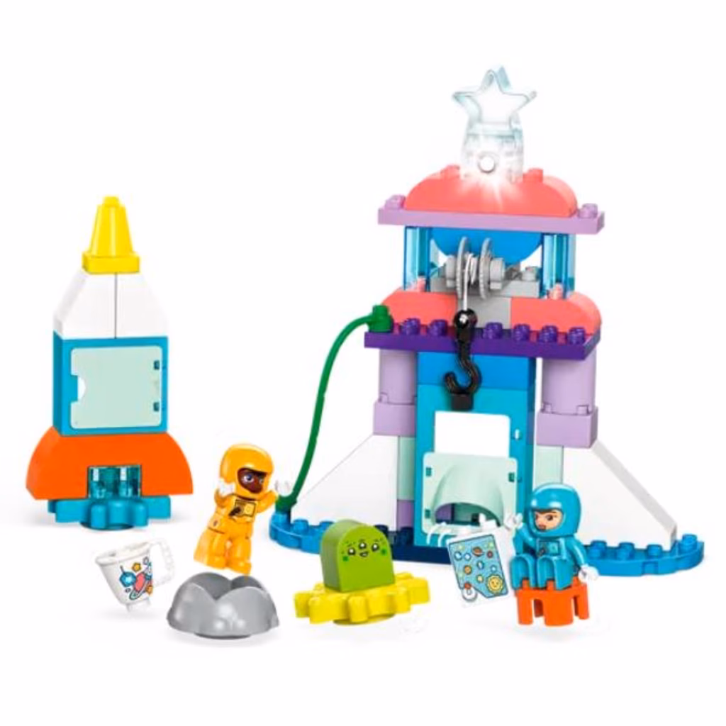 Questo giocattolo spaziale è ricco di divertenti accessori per stimolare il gioco creativo. I bambini in età prescolare esplorano nuovi orizzonti inventando divertenti avventure nello spazio per i 2 personaggi degli astronauti LEGO® DUPLO®, che possono fare amicizia con un alieno o fare una passeggiata spaziale per riparare il razzo con la loro chiave inglese giocattolo.