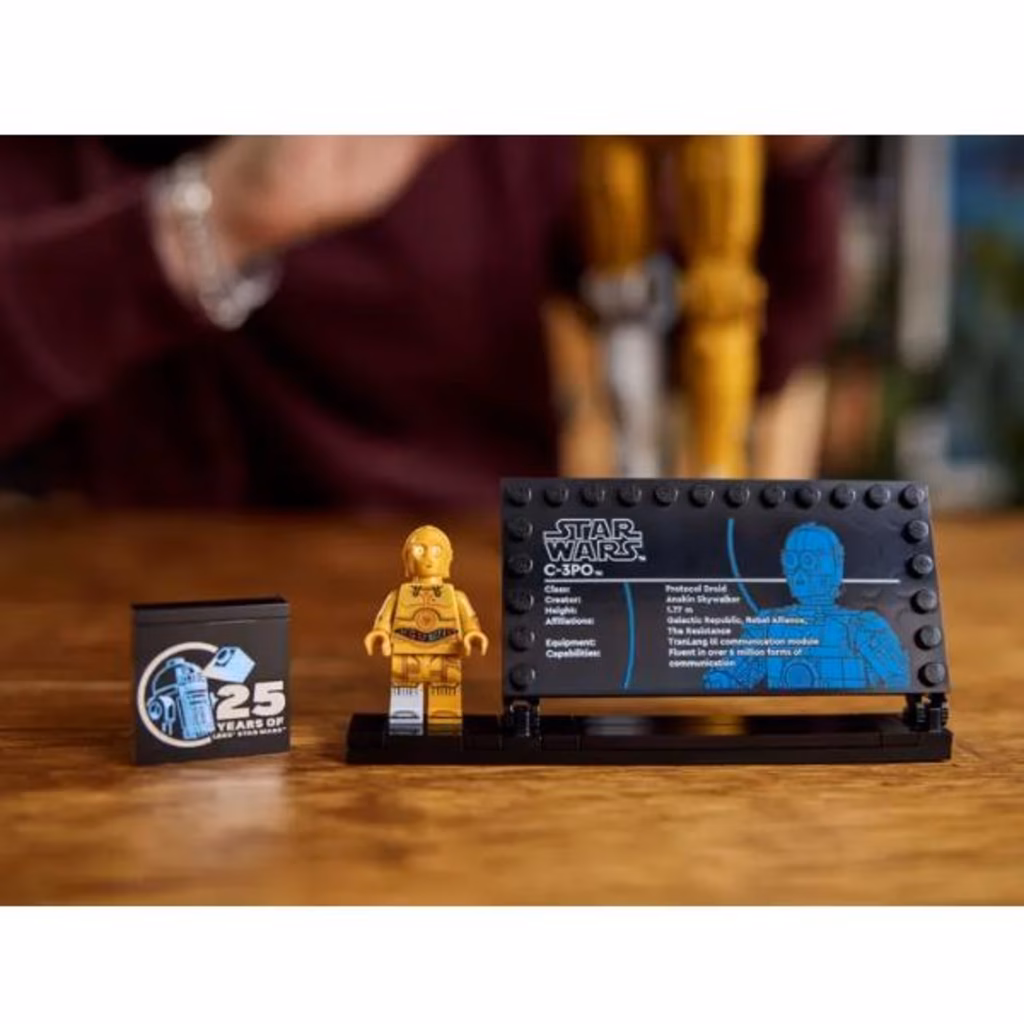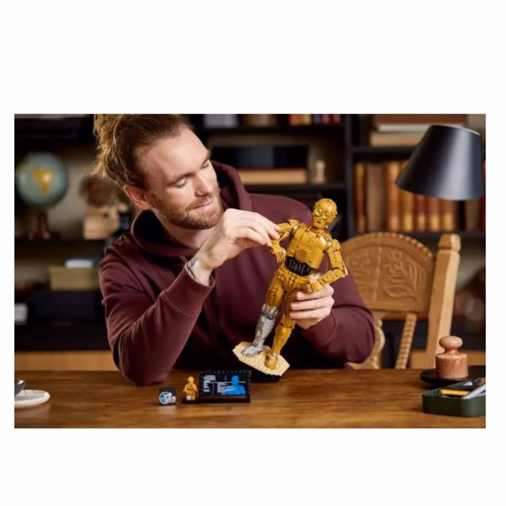 Costruisci ed esponi questo droide costruibile C-3PO LEGO® Star Wars estremamente dettagliato. Un idea regalo nostalgica per gli adulti e tutti i fan della classica saga di Star Wars, questo set da collezione offre una sfida creativa coinvolgentee gratificante. Ricrea ogni dettaglio dell amato personaggio di Star Wars e gira la testa o muovi le braccia per creare pose familiari. Questo set LEGO Star Wars per adulti contiene anche un supporto con una targa informativa su C-3PO e spazio per la minifigure di C-3PO LEGO inclusa, oltre a un mattoncino LEGO Star Wars del 25° anniversario per completare un display accattivante. Per un display decorativo ancora più straordinario, esponi la tua creazione accanto a R2-D2 LEGO Star Wars (set 75379, disponibile separatamente) e riconfigura semplicemente uno dei bracci di C-3PO per ricreare il modo in cui accarezza il capo del suo vecchio amico. Scopri un esperienza di costruzione intuitiva con l app LEGO Builder, dove puoi ingrandire e ruotare il tuo modello in 3D, monitorare i tuoi progressi e salvare tutti i tuoi set in un unico posto.