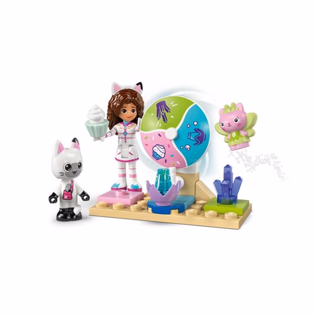 Il set da gioco creativo comprende 2 ambientazioni del film e numerosi personaggi LEGO, tra cui Gabby, Pandy Panda e Gattina Fatina. Nella Dolce montagna i più piccoli troveranno un magico mondo di dolciumi. I personaggi possono scivolare attraverso la cascata colorata su ciambelle galleggianti e il Giardino dei Gattini è un rifugio fantastico dove Gattina Fatina siede sul suo trono di fiori di cristallo e dove i bambini possono trovare tante gemme nascoste. Istruzioni colorate, un grande Starter Brick e sacchetti separati con 1 modello ognuno, rendono l esperienza creativa veloce e divertente per i piccoli costruttori.