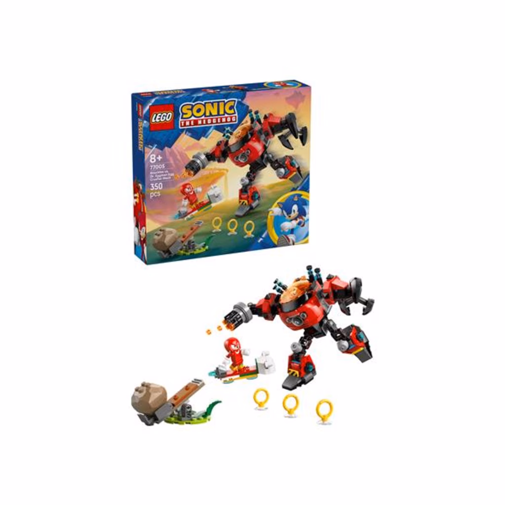 Coinvolgi i fan di Sonic, i bambini e le bambine dagli 8 anni in su in emozionanti avventure con questo set Knuckles vs. il Mech Egg Crusher del Dr. Eggman LEGO® Sonic the Hedgehog (77005), ricco di caratteristiche e funzioni. Questo regalo per igamer include un mech giocattolo snodabile con cabina di guida apribile, uno shooter rotante, un enorme artiglio girevole e arti snodabili per il gioco interattivo. I personaggi di Knuckles l Echidna e del Dr. Eggman sono pronti per un divertente gioco di ruolo e il set contiene anche una hoverboard, una catapulta con 2 massi, 3 anelli d oro e 2 smeraldi del caos.