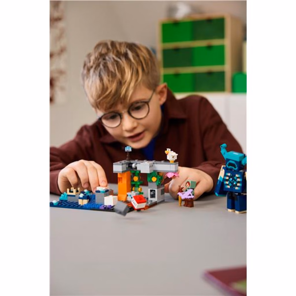 Ambientato in una lussureggiante grotta contenente diamanti e ametiste collezionabili, questo versatile giocattolo costruibile LEGO include una minifigure del Ranger silente di Minecraft, un gruppo di galline e il grande personaggio costruibile del Sorvegliante di Minecraft con testa, braccia e gambe snodabili. Le funzioni di gioco includono un esplosione di dinamite innescata manualmente e una roccia che cade. Gli accessori includono una carota dorata e una pozione che ripristina la salute. Per il divertimento digitale, l app LEGO Builder consente ai bambini di utilizzare il proprio dispositivo per ingrandire e ruotare i modelli in 3D.