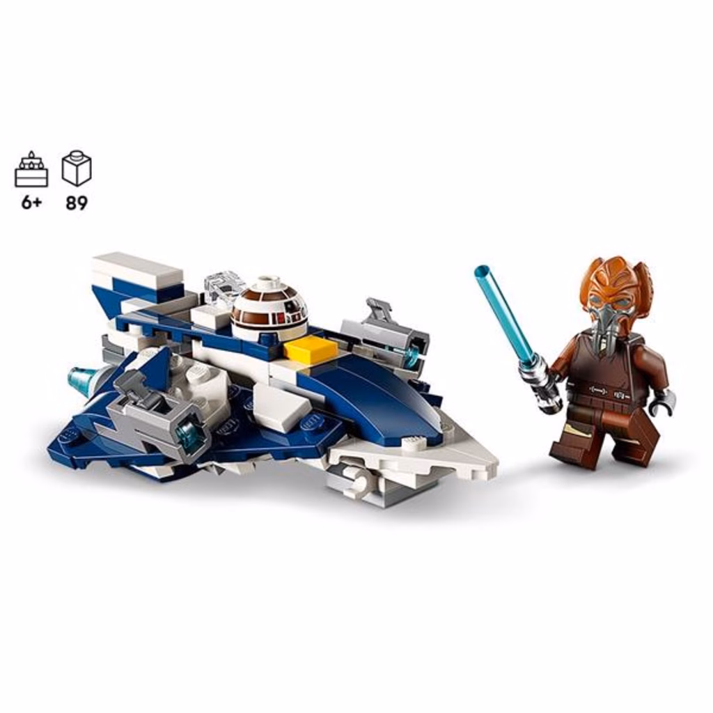 Questo fantastico set da costruzione include anche una minifigure LEGO di Plo Koon con una spada laser blu che si aggancia alla parte inferiore del Microfighter. C è anche un elemento testa R7-D4 che si attacca alla fusoliera davanti alla cabina di pilotaggio per far sembrare che il fidato droide di Star Wars sia il copilota di Plo Koon nelle sue missioni.