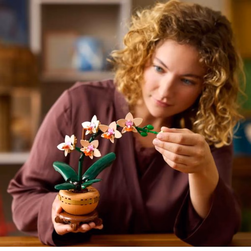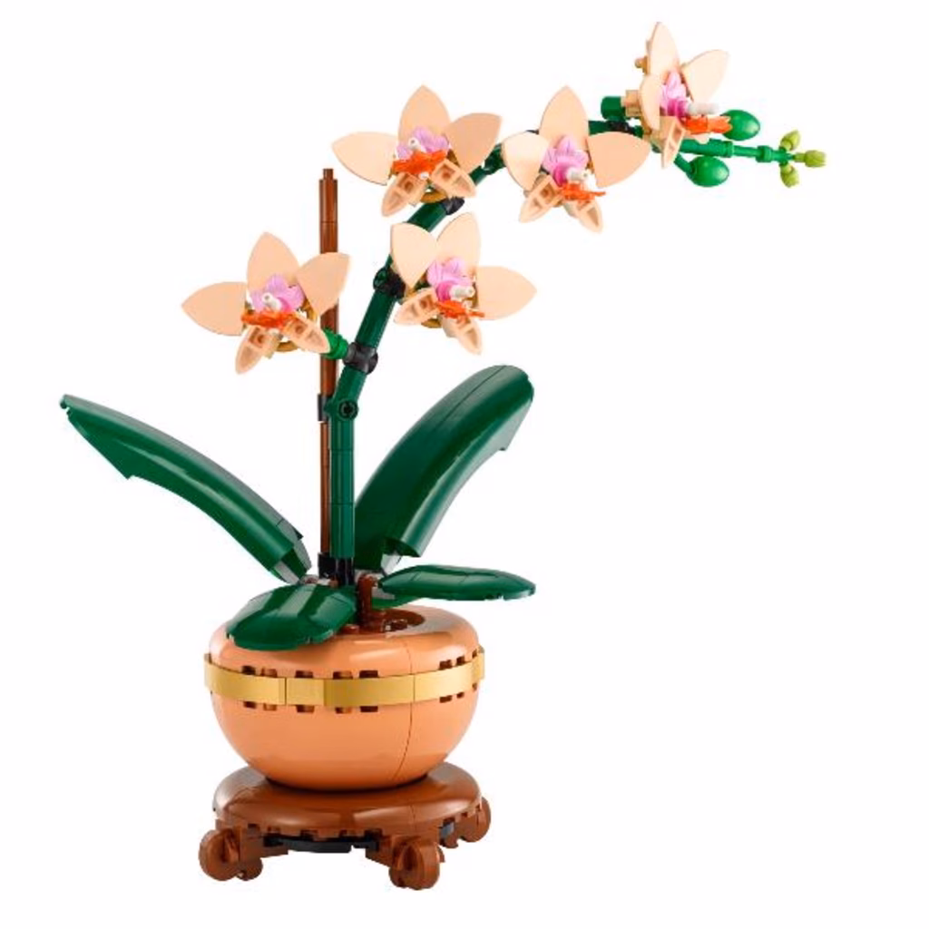La replica realistica presenta 5 fiori di orchidea in fiore e alcuni in bocciolo, oltre a foglie per tanta autenticità in più. Contiene inoltre un vaso da fiori color pesca posizionato su uno splendido piedistallo effetto legno, facilitando l esposizione del fiore LEGO da parte dei fioristi in erba che potranno così portare tanta tranquillità naturale in qualsiasi spazio di vita o di lavoro.