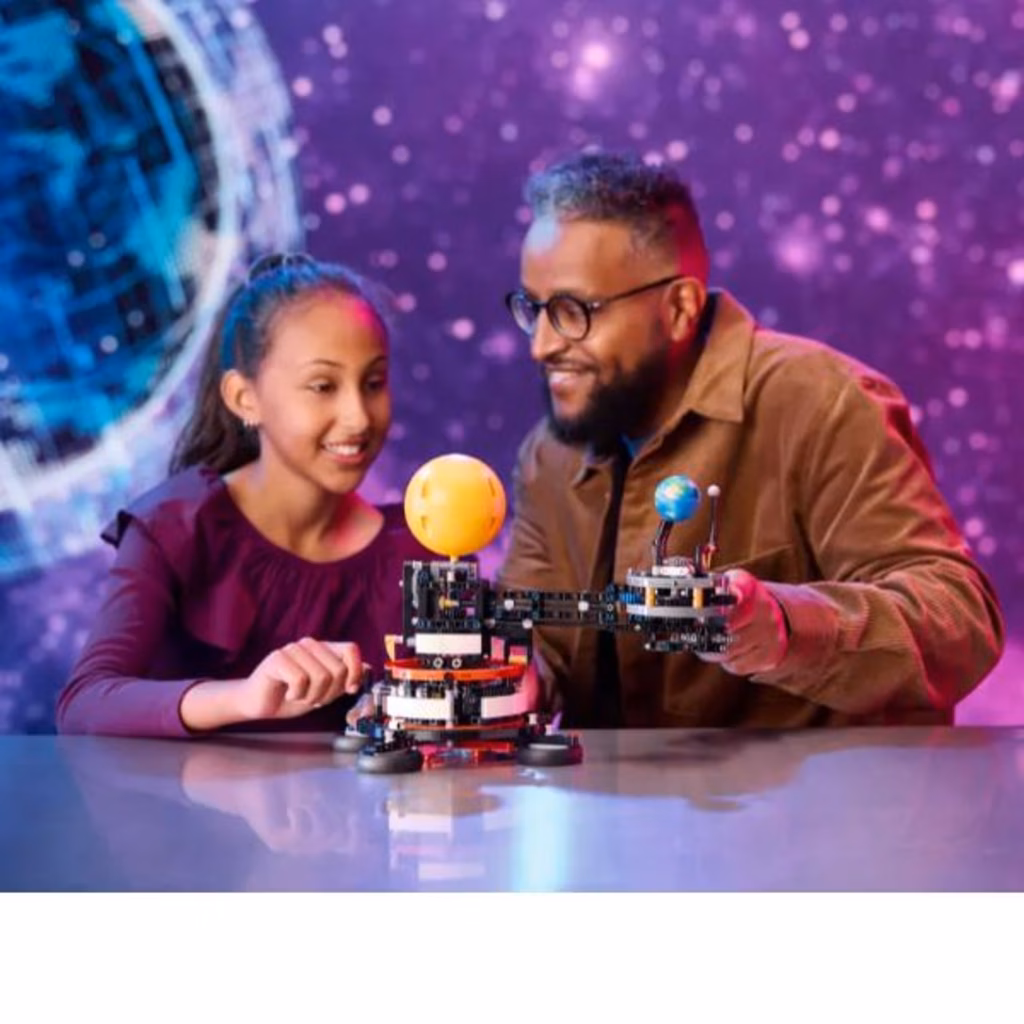 I bambini curiosi dai 10 anni in su adoreranno scoprire il nostro sistema solare con questo set di giocattoli spaziali per bambini Pianeta Terra e Luna in orbita Technic (42179).