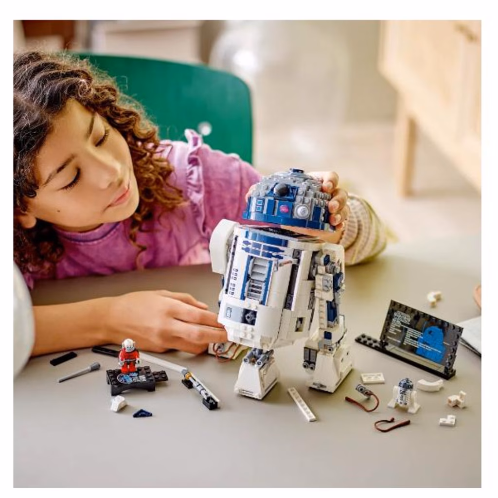 Lascia che i bambini sviluppino il loro affetto per il droide più adorabile della galassia di Star Wars con questo personaggio giocattolo di R2-D2 in mattoncini LEGO® (75379). Questo giocoso modello da esposizione costruibile per i bambini e le bambine dai 10 anni in su è ricco di caratteristiche autentiche che consentono di ricreare momenti classici e storie fantasy originali. Le caratteristiche includono la testa girevole a 360 gradi di R2-D2, una terza gamba collegabile, periscopio collegabile e strumenti collegabili. Per creare un esposizione accattivante, questo set giocattolo collezionabile contiene anche un droide LEGO R2-D2, una speciale minifigure LEGO Star Wars del 25° anniversario di Darth Malak con spada laser ed espositore e una targhetta informativa su R2-D2. Un regalo entusiasmante per i fan di Star Wars e per i collezionisti di memorabilia Star Wars, il set contiene istruzioni dettagliate. Dai anche un occhiata all app LEGO Builder con i suoi strumenti di ingrandimento e rotazione che migliorano l esperienza creativa.