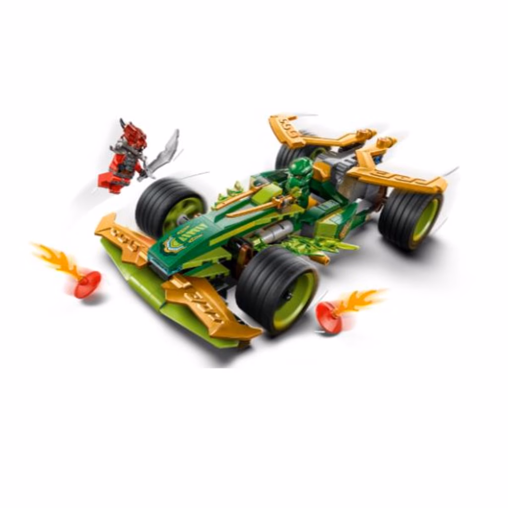 Il kit di costruzione per il gioco di finzione include 2 minifigure NINJAGO: Lloyd con 2 spade katana dorate e un malvagio Guerriero dragoniano con una spada per consentire ai bambini di inscenare emozionanti battaglie. Il set comprende anche 2 elementi fulmini per creare un piccolo percorso a ostacoli per l auto da corsa.