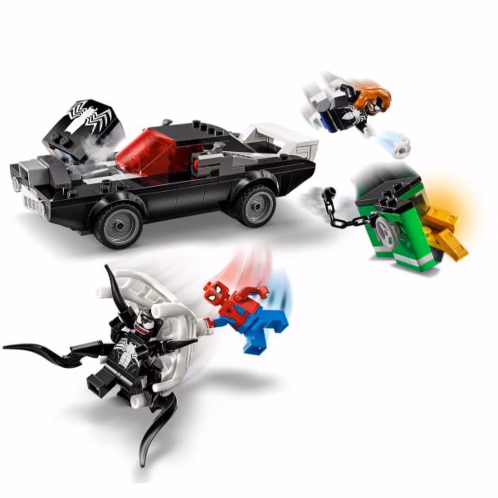 L auto giocattolo costruibile di Venom presenta 3 minifigure: Spider-Man con un blaster spara-ragnatele, Venom con 4 tentacoli e Spider-Woman (Julia Carpenter) con una ragnatela flessibile a bbastanza grande da intrappolare un cattivo. L auto venomizzata è dotata di shooter su ciascun lato, motore accessibile e cabina di guida apribile. Venom può sedersi all interno dell auto rimuovendo i suoi 2 tentacoli inferiori, che possono essereutilizzati per venomizzare ulteriormente l auto. Una cassaforte contenente lingotti d oro ispira il gioco di ruolo tra gli eroi e il cattivo. La cassaforte può essere trascinata via con l auto, la quale contiene anche un vano per i lingotti d oro. Per tanto divertimento digitale in più, i costruttori possono ingrandire, ruotare i modelli in 3D e monitorare i loro progressi utilizzando la divertente e intuitiva app LEGO Builder.