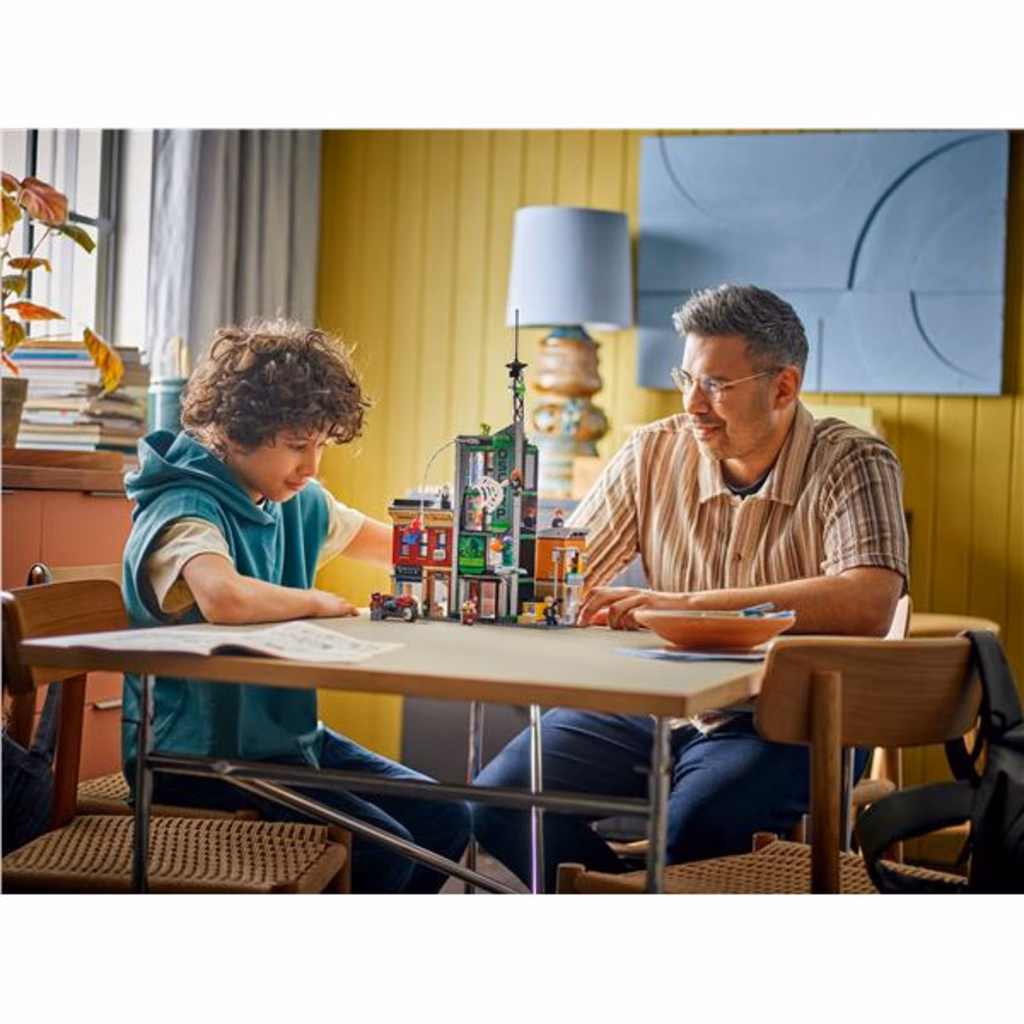 La scena urbana comprende 3 edifici separati: l appartamento di Miles Morales con una gioielleria sottostante, l edificio della Oscorp e l appartamento di Venom con un minimarket sottostante. Ogni stanza è arredata con attrezzature e accessori. Otto minifigure LEGO dei film Marvel assicurano un azione a colpi di ragnatele infinita: Spider-Man, Spider-Woman, Miles Morales con la sua moto, Eddie Brock, Ghost-Spider, Norman Osborn, Umarak il Cacciatore e Goblin con il suo aliante. I bastoncini trasparenti consentono ai bambini di collocare e mettere in posa i personaggi con facilità realistica. La funzione Build Together nell app LEGO Builder permette ad amici e familiari di condividere il divertimento creativo.