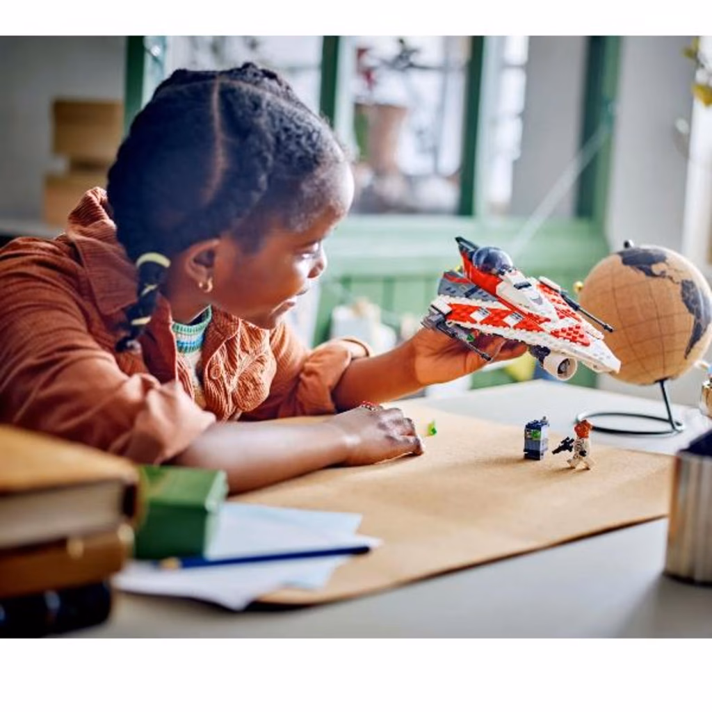 Presenta ai bambini il personaggio misterioso di un set LEGO® Star Wars del 2002, diventato uno dei preferiti dai fan, con il set Starfighter di Jedi Bob (75388). Una fantastica idea regalo per il compleanno dei bambini, delle bambine e di tutti i fan dagli 8 anni in su, questo set giocattolo costruibile LEGO Star Wars contiene un caccia stellare con cabina di pilotaggio apribile, 2 shooter a molla e carrello di atterraggio retrattile. Ricrea emozionanti avventure con 2 minifigure LEGO Star Wars: Jedi Bob e un soldato Ackbar, più un droide LEGO Servo (SR-V0), proprio come nello special Disney+ LEGO Star Wars: Rebuild the Galaxy. Accessori come la spada laser di Jedi Bob, che si aggancia alla base dell astronave giocattolo in mattoncini, e un cartone di latte blu e un elemento banana, che possono entrambi essere riposti nella stiva, aggiungono tanto divertimento in più.