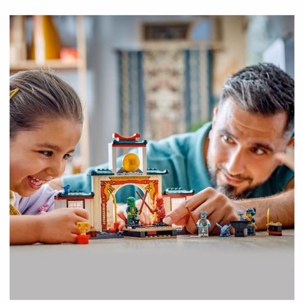 Delizia i bambini amanti dei giocattoli ninja con il Tempio dello Spinjitzu Ninja LEGO® NINJAGO® (71831). Questo set con drago consente ai bambini dai 4 anni in su di ricreare le avventure della stagione 3 del programma TV NINJAGO La rivolta dei draghi. Questo set per il gioco di ruolo ninja è ideale per il gioco di finzione con il palco del torneo NINJAGO, il giardino, la casa del tè e l area di addestramento con armi.