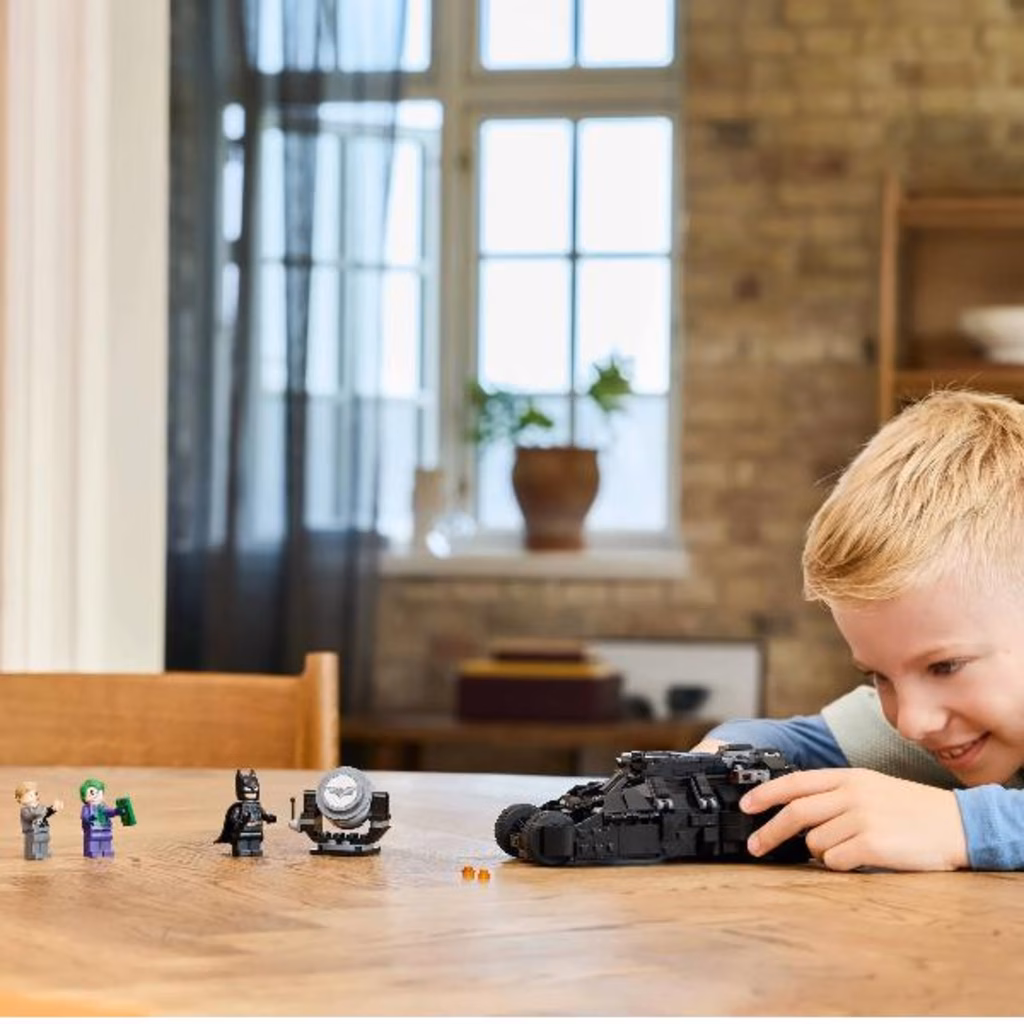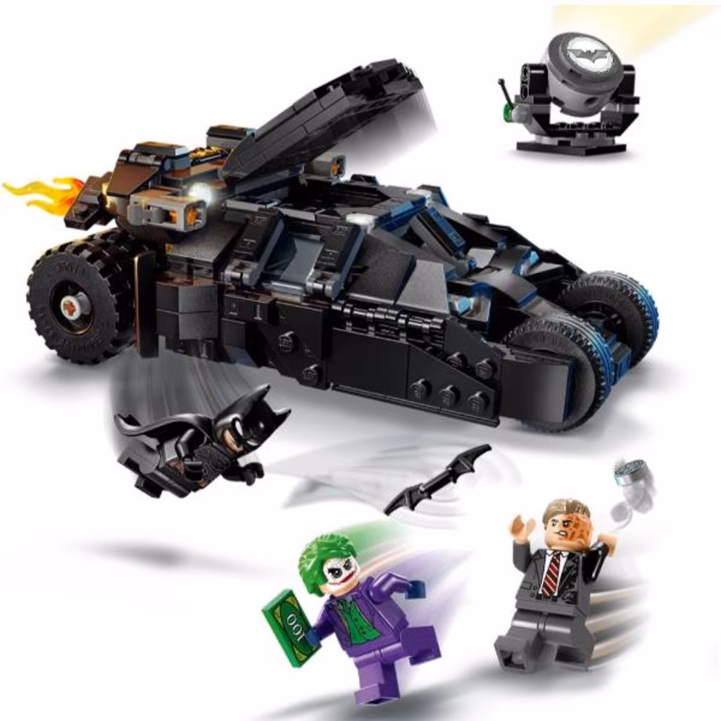 Questo set di gioco dei supereroi LEGO Batman contiene 3 popolari minifigure: Batman armato con il suo Batarang, il Joker con in mano una mazzetta di contanti e Two-Face con la sua caratteristica moneta d argento. La Batmobile Tumbler costruibile si apre per rivelare il pannello degli strumenti e una cabina di pilotaggio con spazio per Batman. Un elemento fiamma rimovibile fuoriesce dal tubo di scappamento del veicolo. Il proiettore Bat-segnale (non si illumina) si inclina e ruota di 360 gradi in entrambe le direzioni. Per tanto divertimento digitale in più, i costruttori possono ingrandire, ruotare i modelli in 3D e monitorare i loro progressi utilizzando la divertente e intuitiva app LEGO Builder.