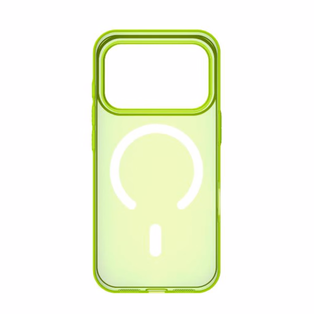 Dona un tocco di stile al tuo iPhone 17 Pro con questa cover rigida color giallo fluo.