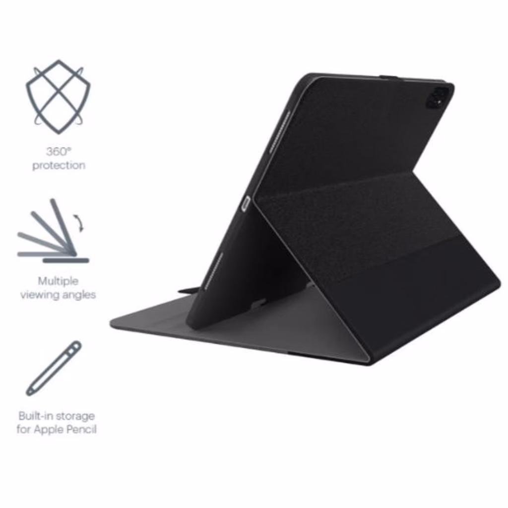 L'alloggiamento integrato per Apple Pencil significa che tutti i tuoi oggetti essenziali per l'iPad possono essere conservati al sicuro in un unico posto, pronti a prendere nota all'apertura. Trasforma facilmente la tua custodia in un supporto con tre viste personalizzabili, permettendoti di scegliere il tuo angolo perfetto mentre lavori, presenti o guardi Netflix.