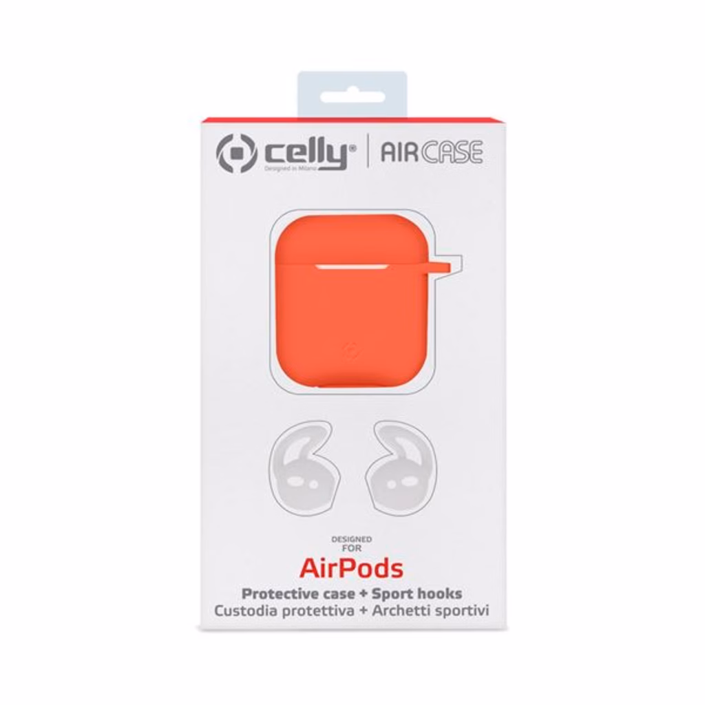Cover silicone arancione CELLY AIRCASE - AIRPODS 1st Gen. / 2nd Gen. Case SHOCK AIRCASEOR