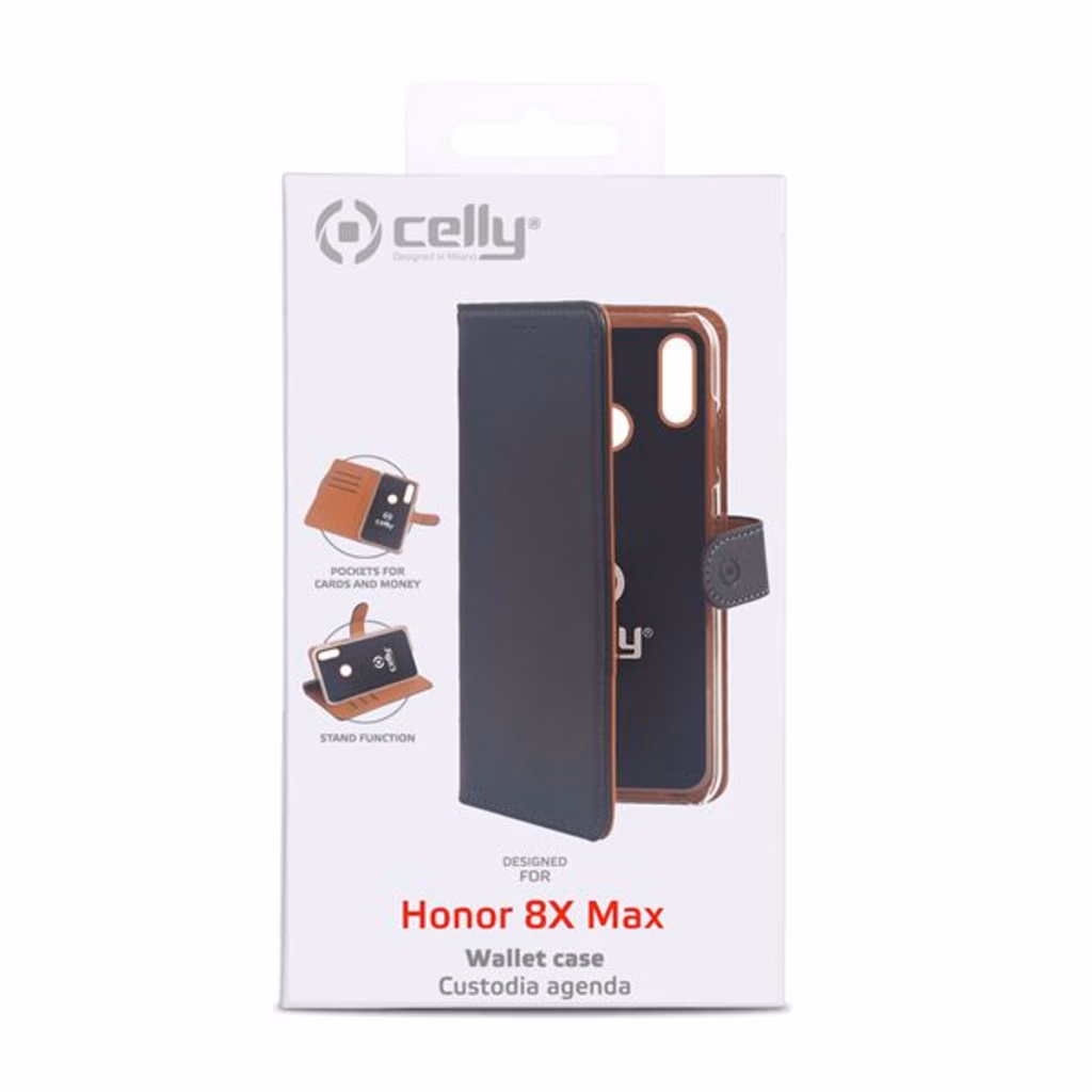 Cover similpelle nero CELLY WALLY - Honor 8X Max WALLY812