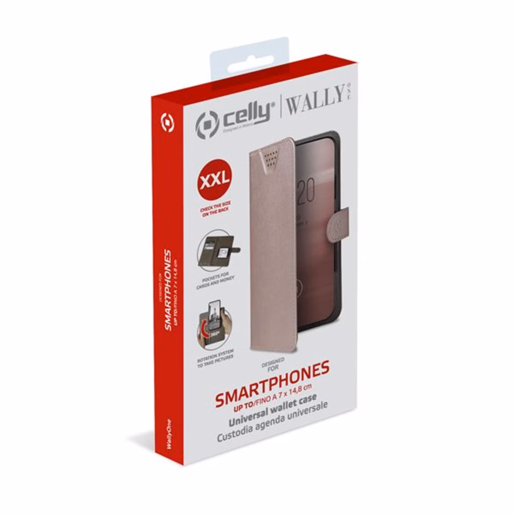 Cover similpelle rosa CELLY WALLY ONE - Universal Case Display Size 5.0"-5.5" WALLYONEXXLPK