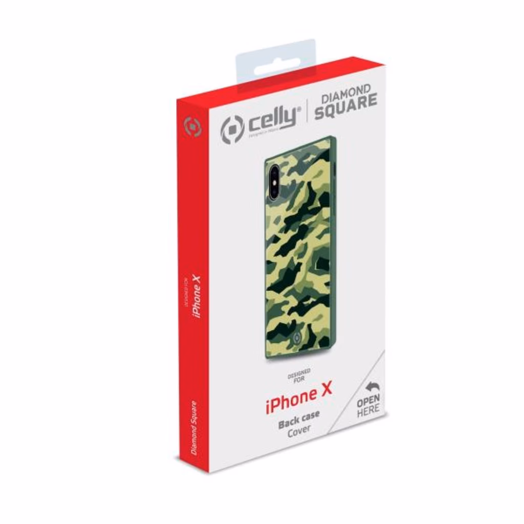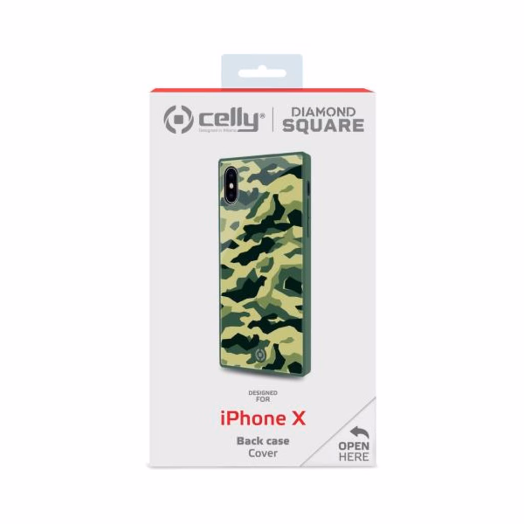 Cover tpu + vetro temperato verde CELLY DIAMOND SQUARE - Apple iPhone Xs/ iPhone X DIAMONDSQ900GN