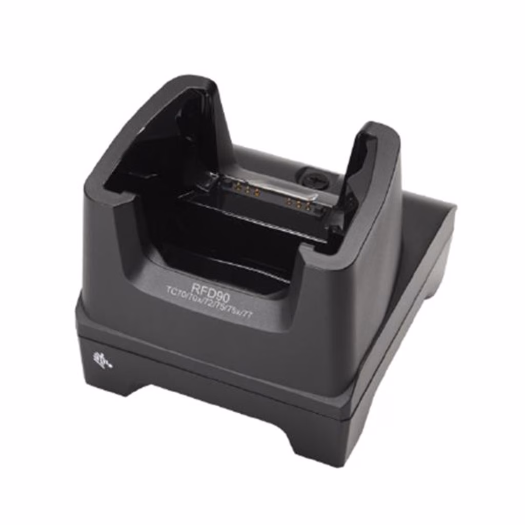 RFD90, 1 Device Slot/0 Toaster Slots, Communication Cradle with support for TC70/70x/72/75/75x/77. Requires Power Supply (PWR-BGA12V50W0WW), DC Line Cord (CBL-DC-388A1-01), and Country Specific Line Cord.
