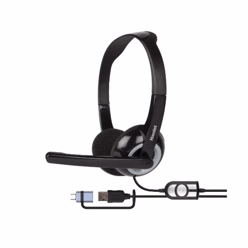 Hamlet Smart Headset è una comoda cuffia con microfono regolabile che consente la comunicazione a mani libere. È la soluzione ideale per chiamate via internet tramite applicazioni telefoniche come Skype , giochi on-line, ascolto di musica e chat. Smart Headset ha un design leggero e confortevole grazie all'archetto regolabile e ai morbidi auricolari in spugna acustica fonoassorbente che contribuiscono a ridurre il rumore ambientale. Il microfono integrato offre una buona qualità della voce e può essere posizionato liberamente. La cuffia dispone inoltre di comodi controlli sul cavo per la regolazione del volume e la disattivazione di audio e microfono. L'installazione è molto semplice grazie alla funzione Plug-and-Play, è sufficiente collegare il cavo al computer senza la necessità di installare software aggiuntivo.