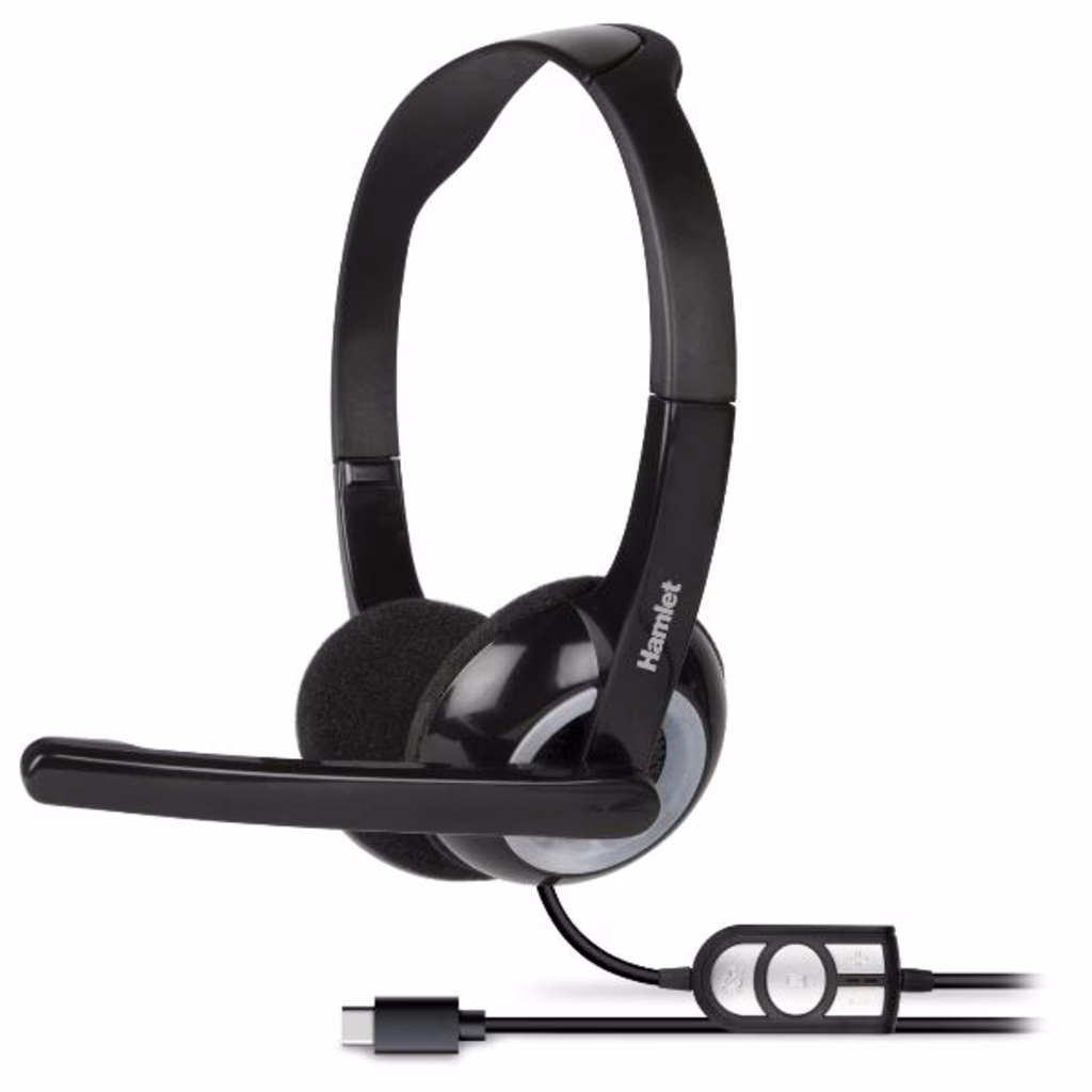 Hamlet Smart USB-C Headset è una comoda cuffia con microfono regolabile che consente la comunicazione a mani libere. È la soluzione ideale per chiamate via internet tramite applicazioni telefoniche come Skype , giochi on-line, ascolto di musica e chat. Smart USB-C Headset ha un design leggero e confortevole grazie all'archetto regolabile e ai morbidi auricolari in spugna acustica fonoassorbente che contribuiscono a ridurre il rumore ambientale. Il microfono integrato offre una buona qualità della voce e può essere posizionato liberamente. La cuffia dispone inoltre di comodi controlli sul cavo per la regolazione del volume e la disattivazione di audio e microfono. L'installazione è molto semplice grazie alla funzione Plug-and-Play, è sufficiente collegare il cavo al computer senza la necessità di installare software aggiuntivo.