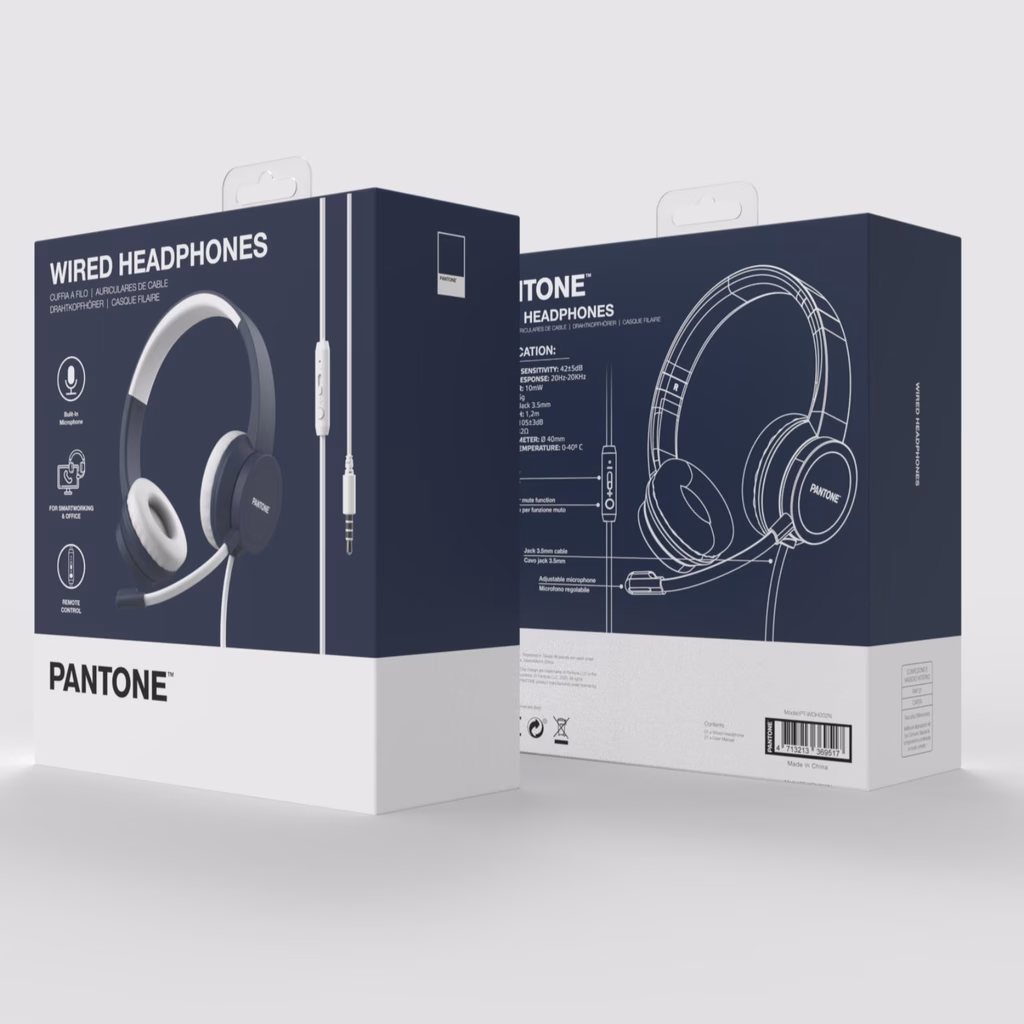 Le Cuffie Pantone sono dotate di un cavo di 1,2m di lunghezza e di connettore Jack 3.5mm