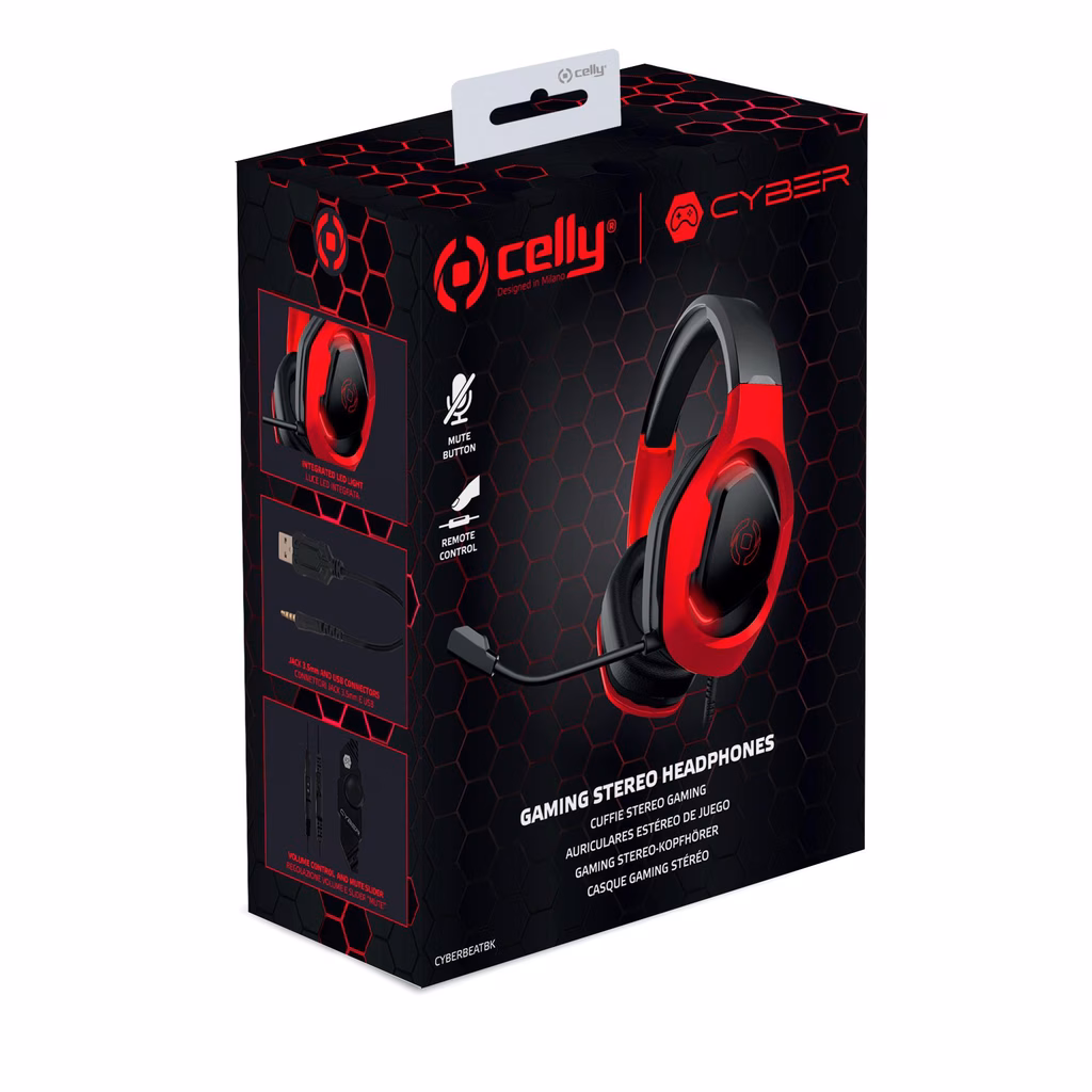 Cuffie con filo sì 1 x jack 3,5mm + USB Rosso CELLY CYBERBEAT - Wired Gaming Headphones CYBERBEATBK