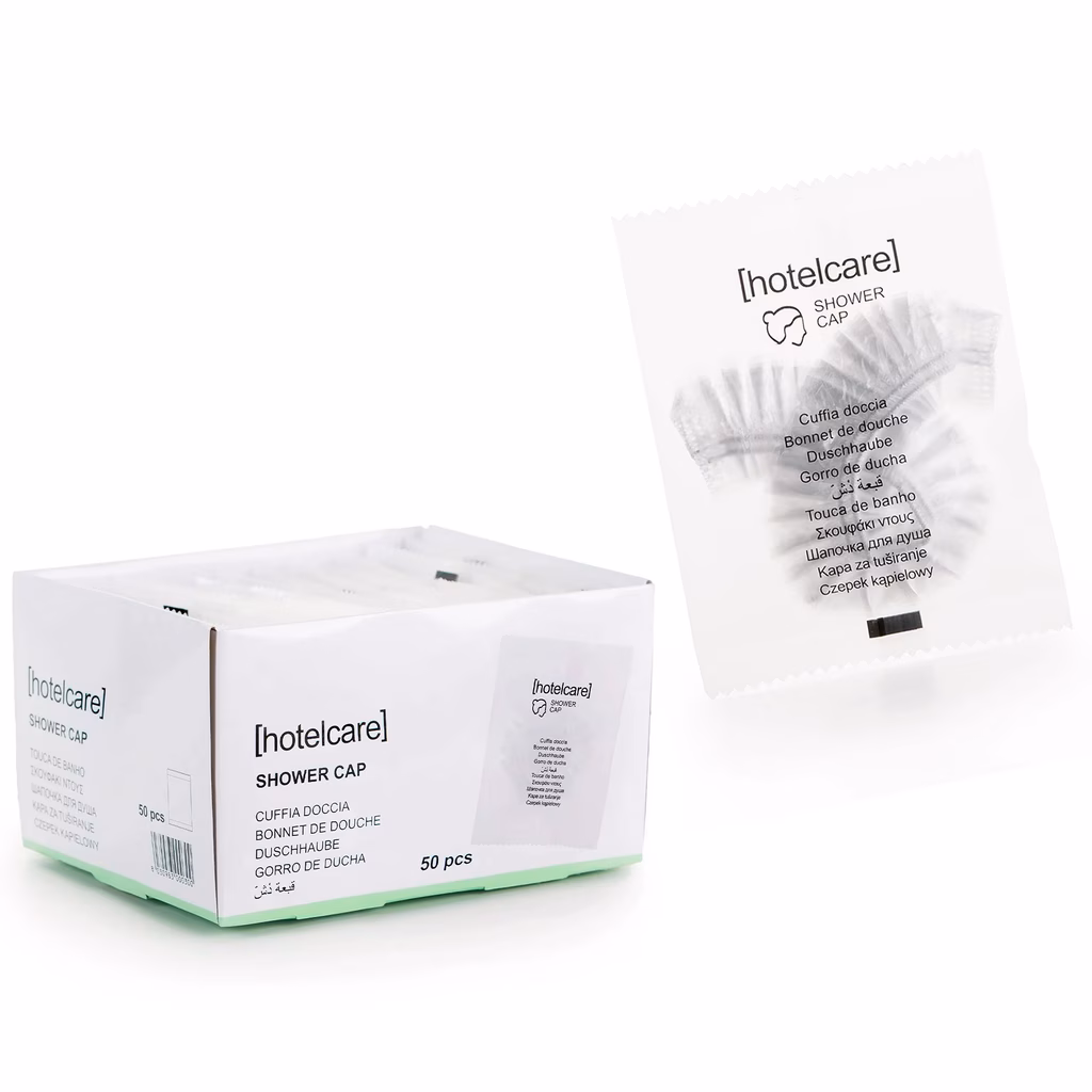 Cuffia per doccia in flow-pack satinato - dimensioni: cm 7,5x10,2