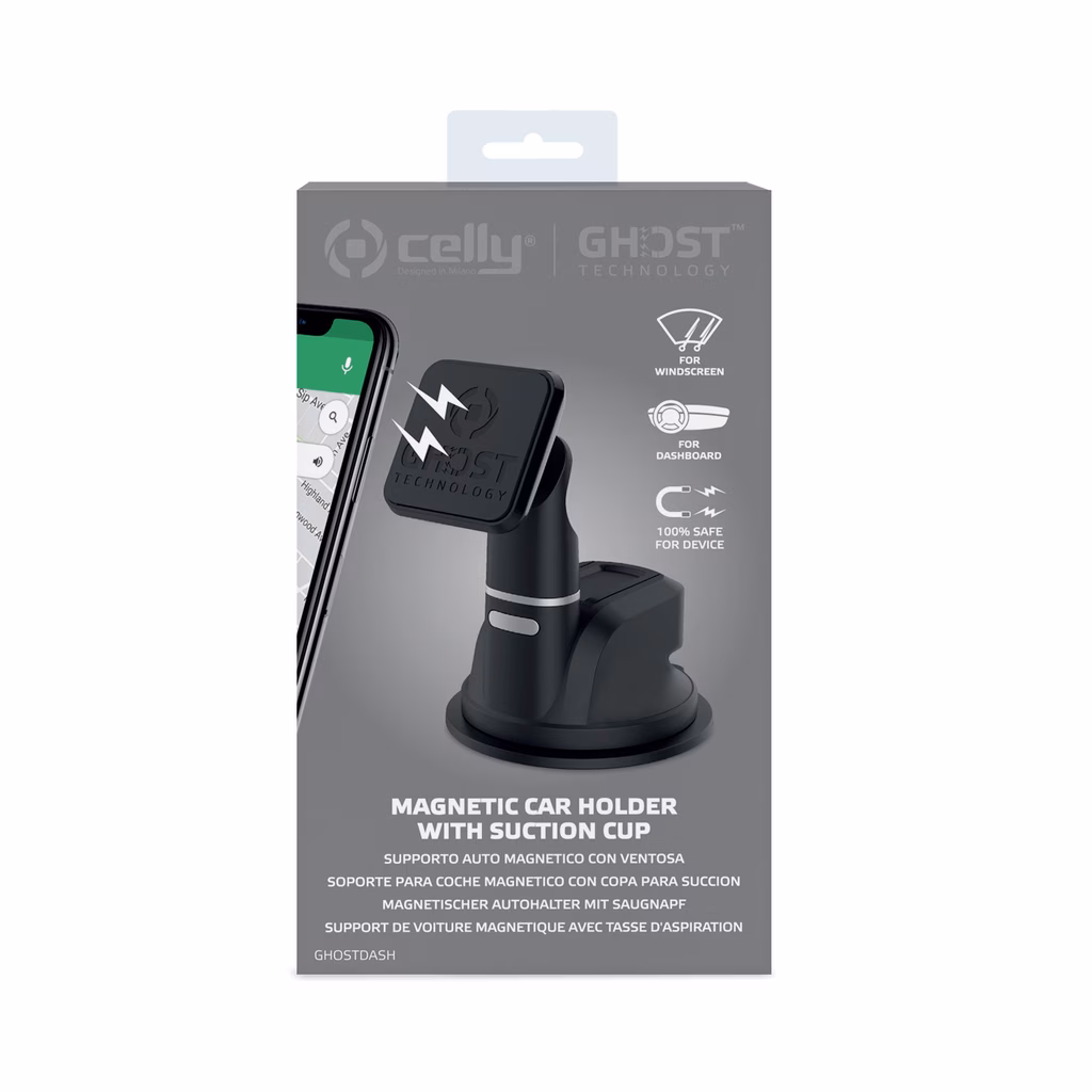 Utilizza il tuo smartphone su GHOSTDASH con un semplice gesto: avvicinalo alla placca magnetica di GHOSTDASH per fissarlo nella posizione desiderata.
