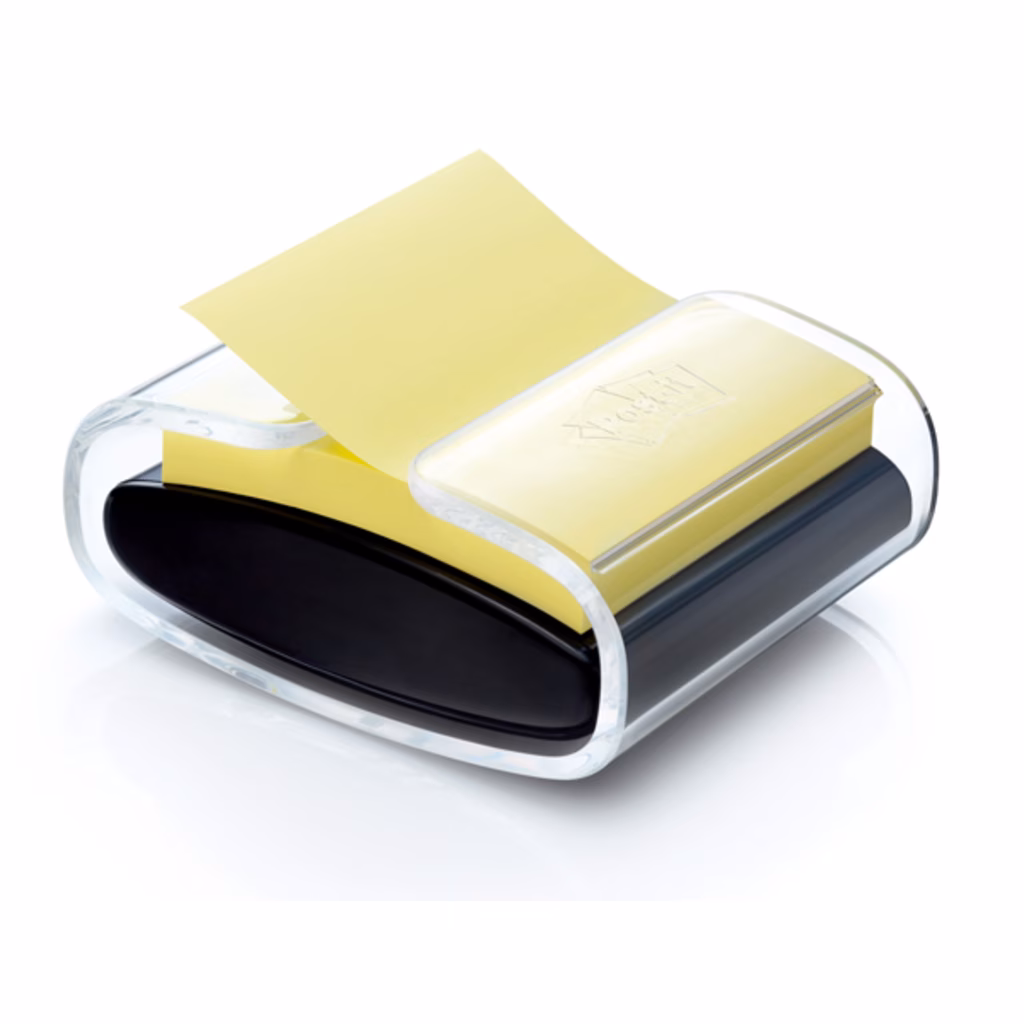 Set completo da scrivania: dispenser Post-it® Pro da tavolo a base appesantita ricaricabile + 1 ricarica di foglietti Post-it® Super Sticky a "Z" 76x76 per dispenser - foglietti colore giallo Canary - blocchetto da 90 fogli