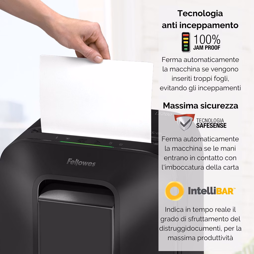 Distruggidocumenti a miniframmenti FELLOWES POWERSHRED LX200 livello sicurezza P-4 colore nero