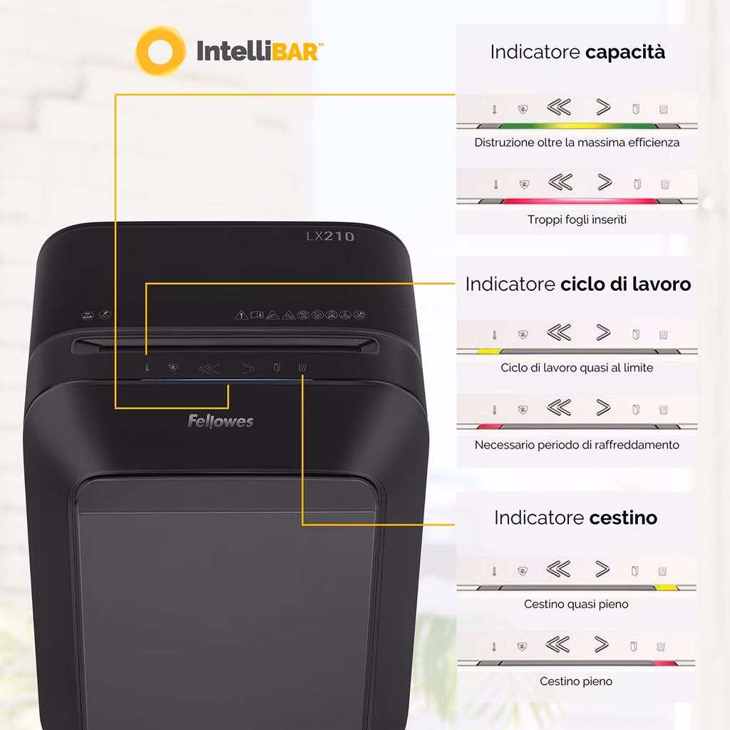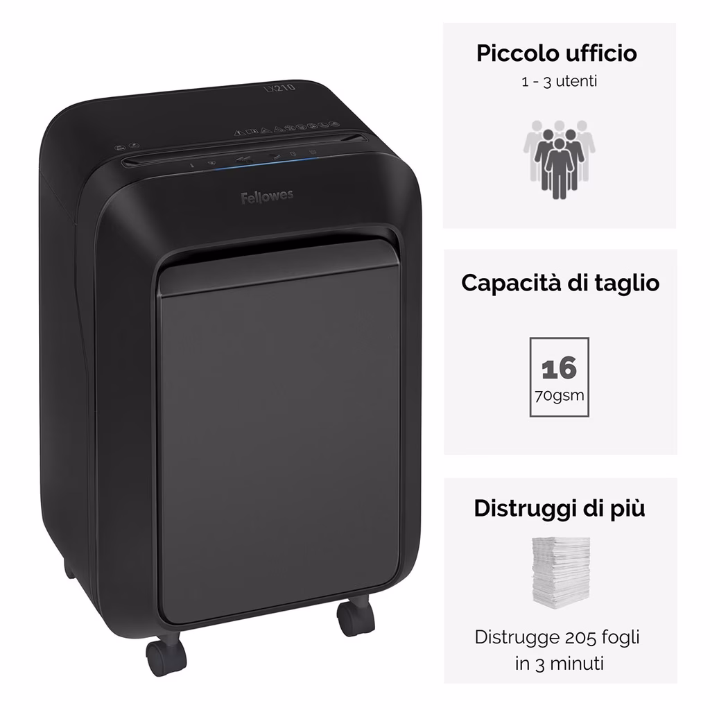 Distruggidocumenti a miniframmenti FELLOWES POWERSHRED LX210 livello sicurezza P-4 colore nero
