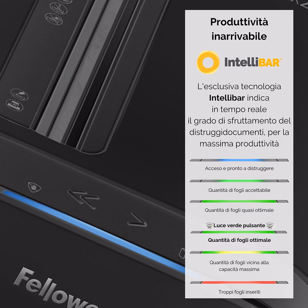 Distruggidocumenti a microframmento P5. Distrugge 12 fogli x volta, ciclo continuo di 10 minuti, cestino da 23 litri. I nuovi dsitruggidocumenti della serie LX hanno un nuovo design moderno unito ad una nuova tecnologia INTELLIBAR che permette di avere il pieno controllo della macchina.