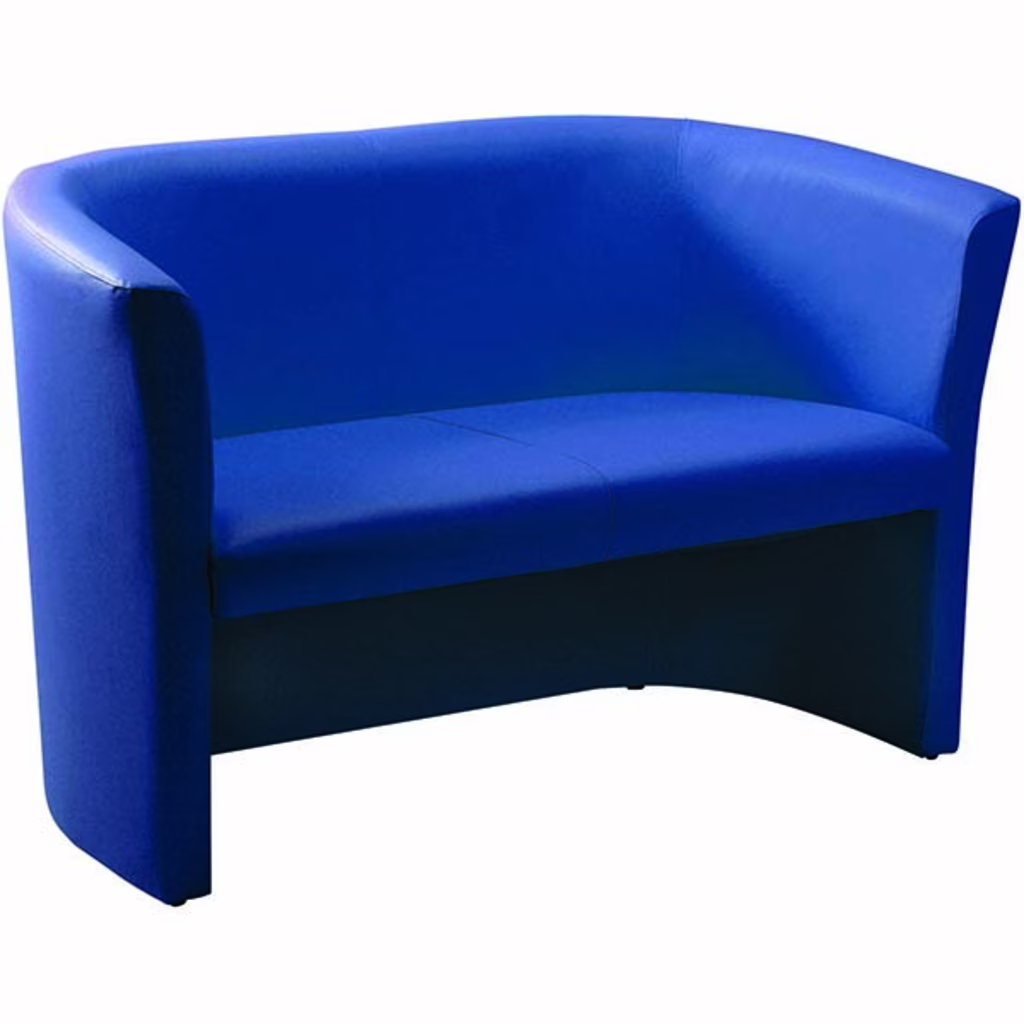 Divano a due posti con imbottitura in resina poliuretanica densità 30 kg/mc. Dimensioni LxpxH cm 125x62x78. Rivestimento in ecopelle colore blu