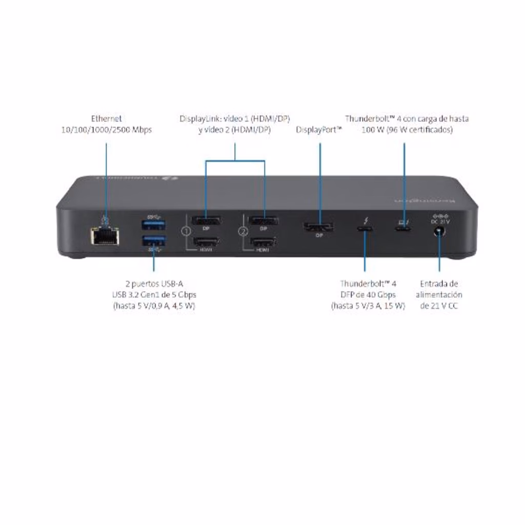 La docking station ibrida SD5920T EQ Thunderbolt 4 Quad 4K con tecnologia DisplayLink® è progettata per soddisfare queste esigenze, fornendo una connessione senza problemi per i dispositivi Thunderbolt e USB-C®.